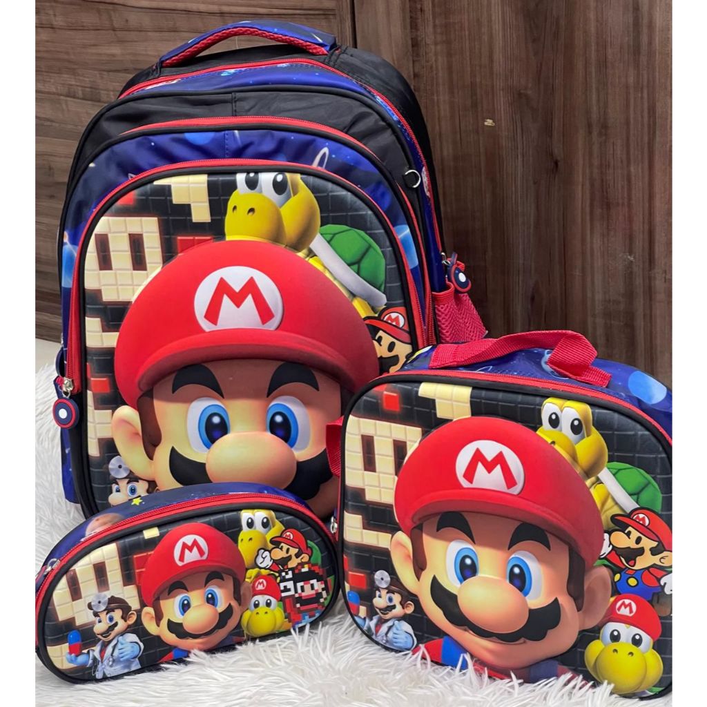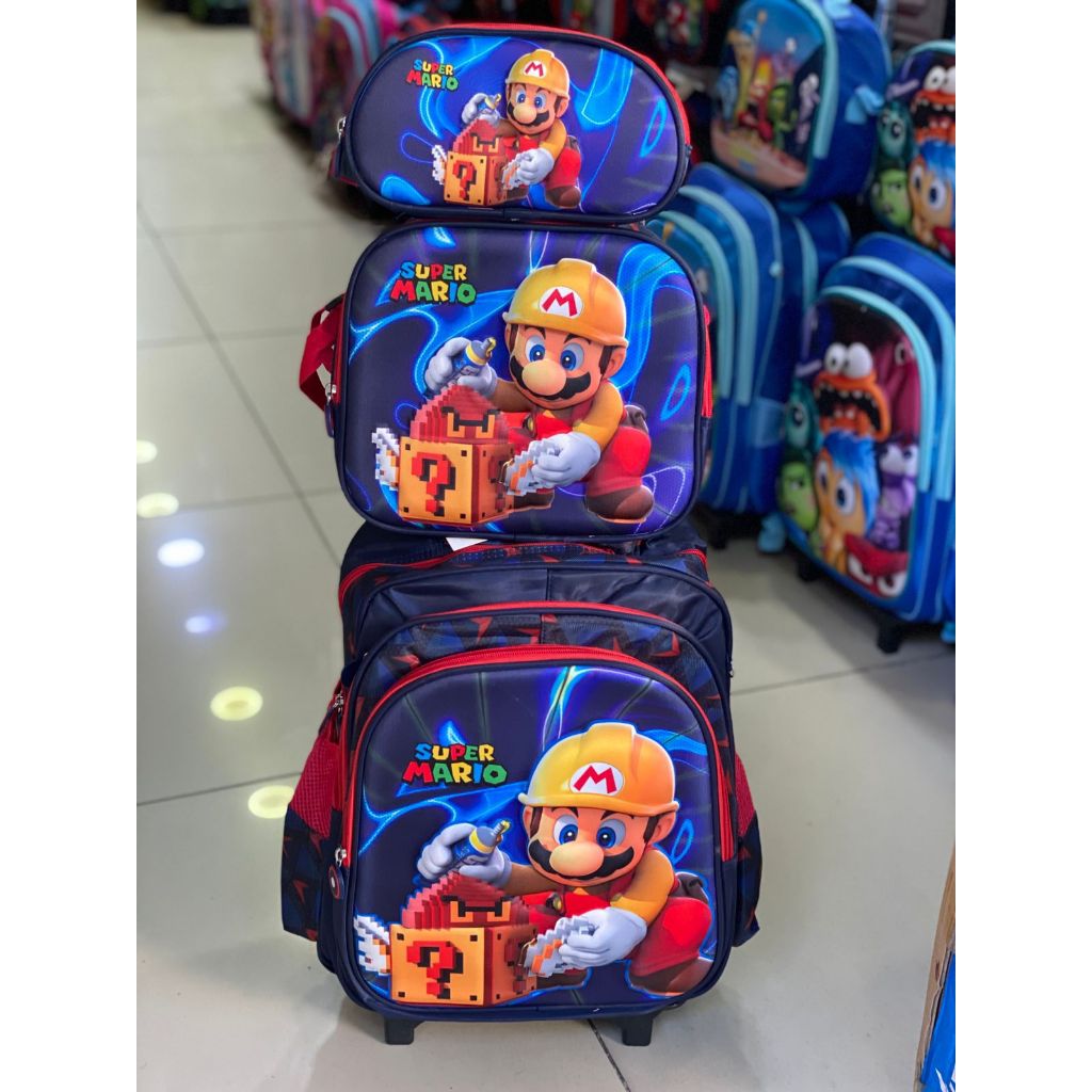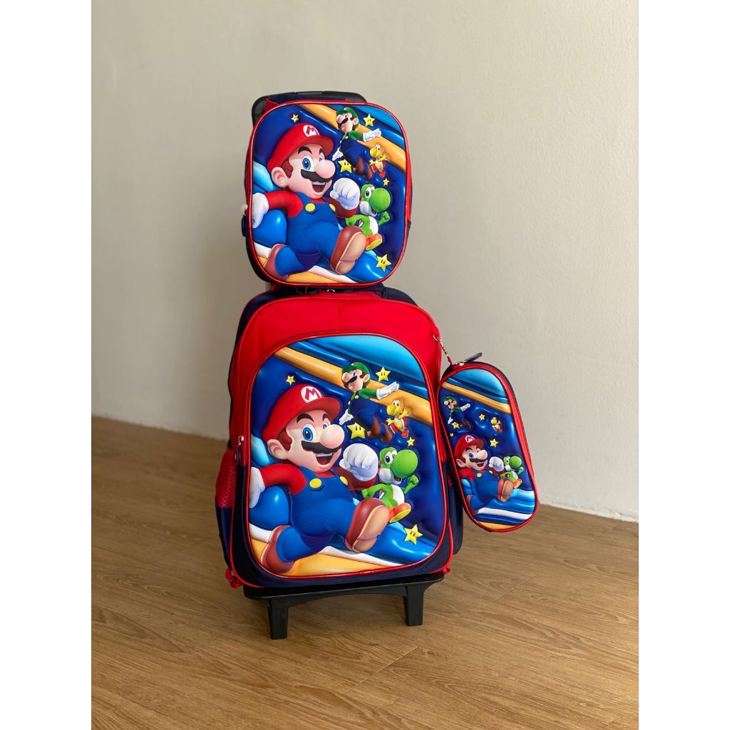 Mario | Kit Mochila Escolar Infantil com Rodinhas + Lancheira + Estojo