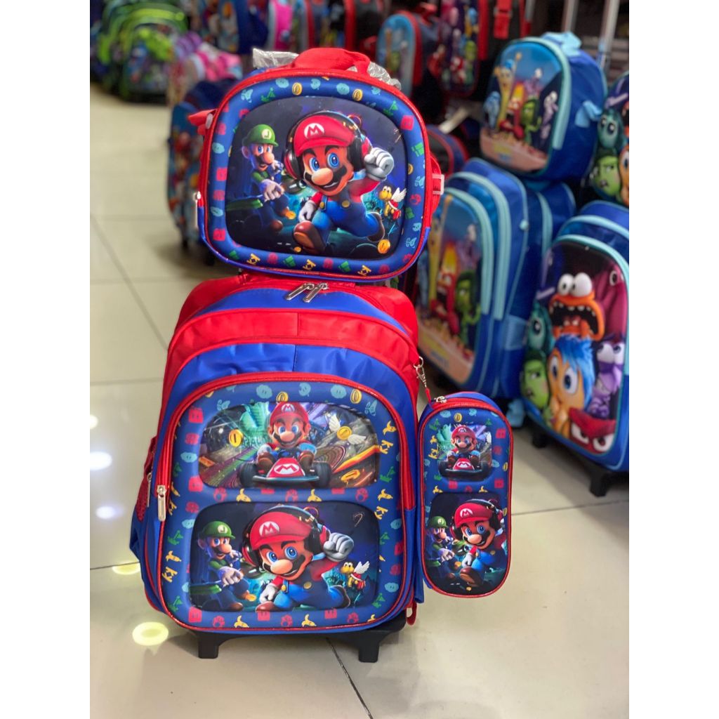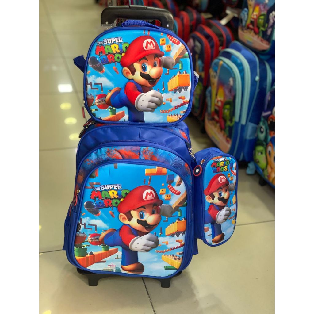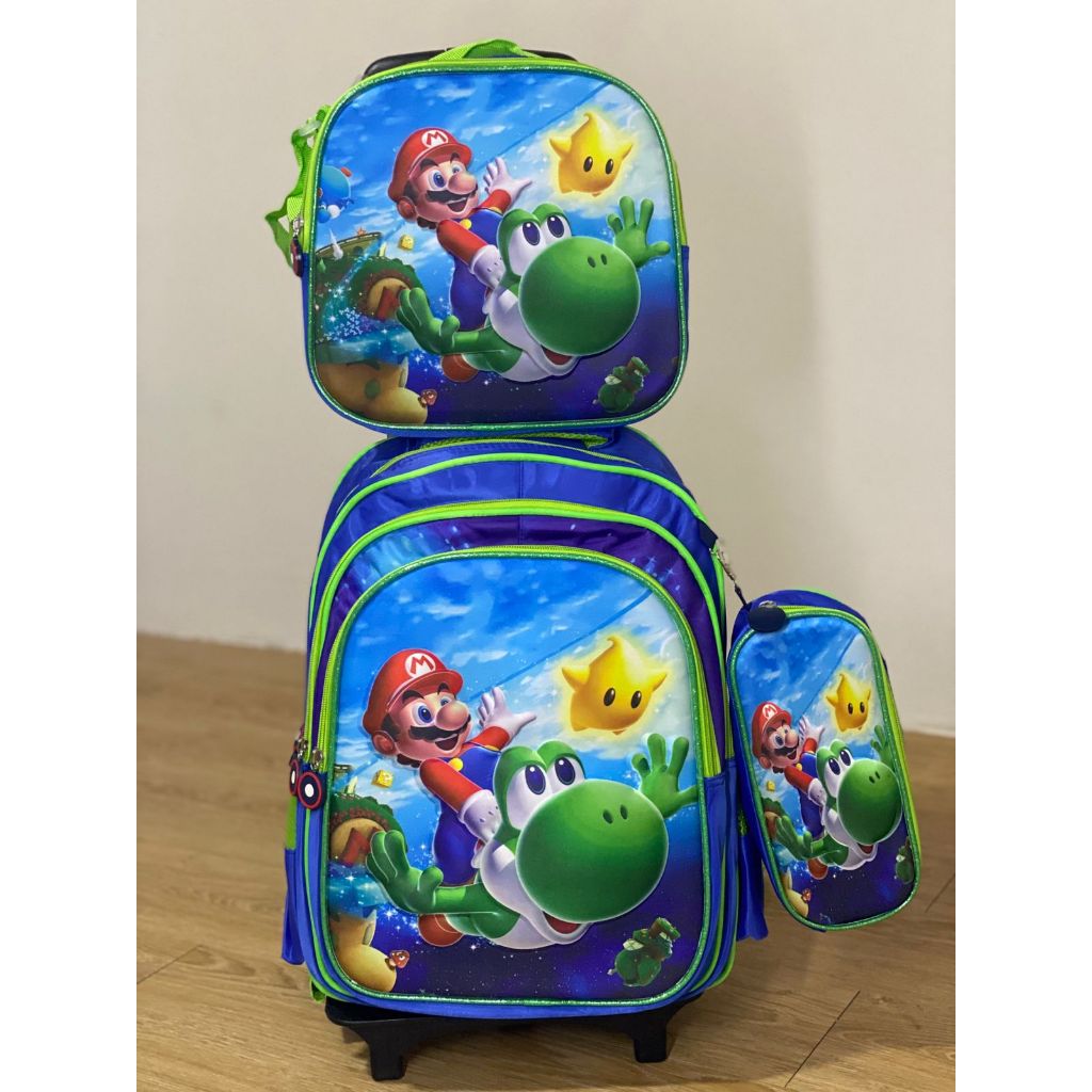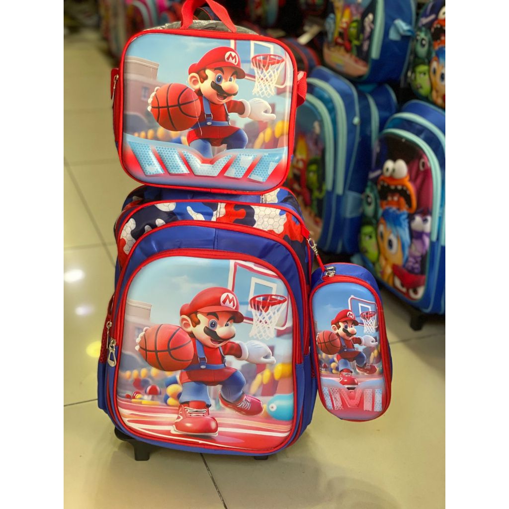 Mario | Kit Mochila Escolar Infantil com Rodinhas + Lancheira + Estojo