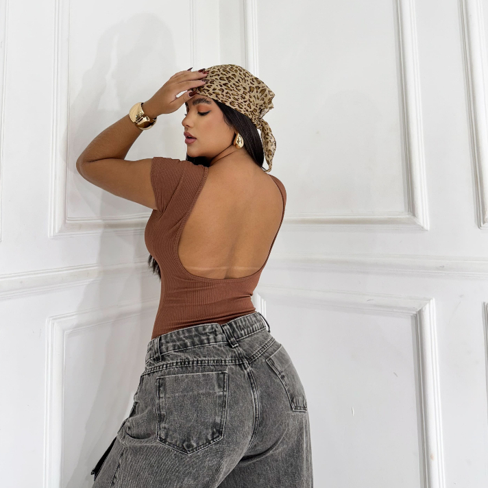 Body Feminino Costa Aberta Collant Decote Costa Básico Casual Dia Noite Blusa Manga Verão Carnaval
