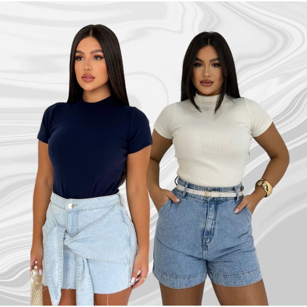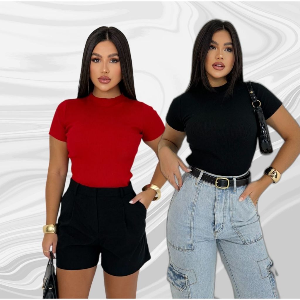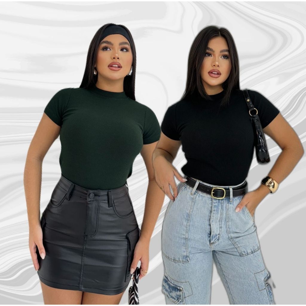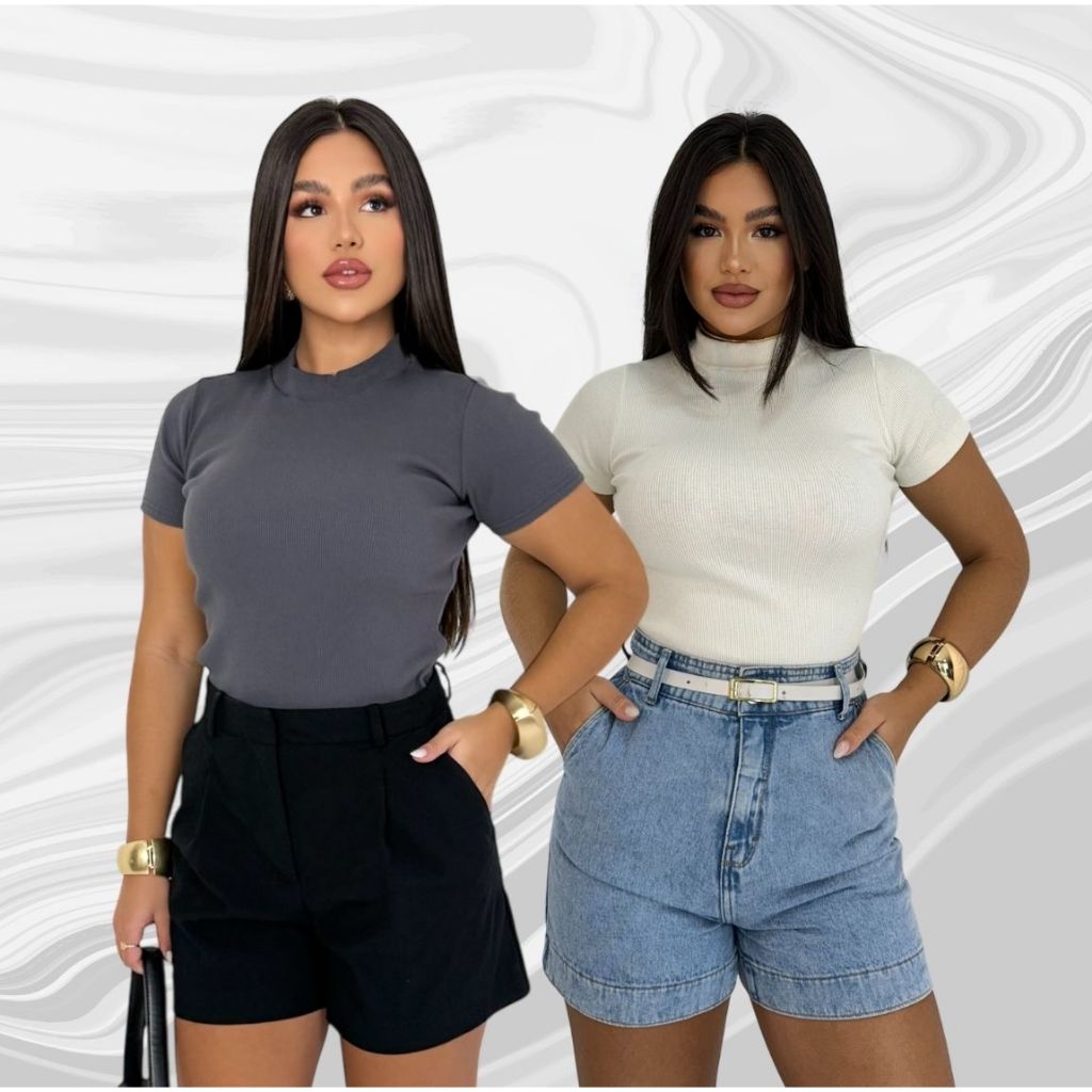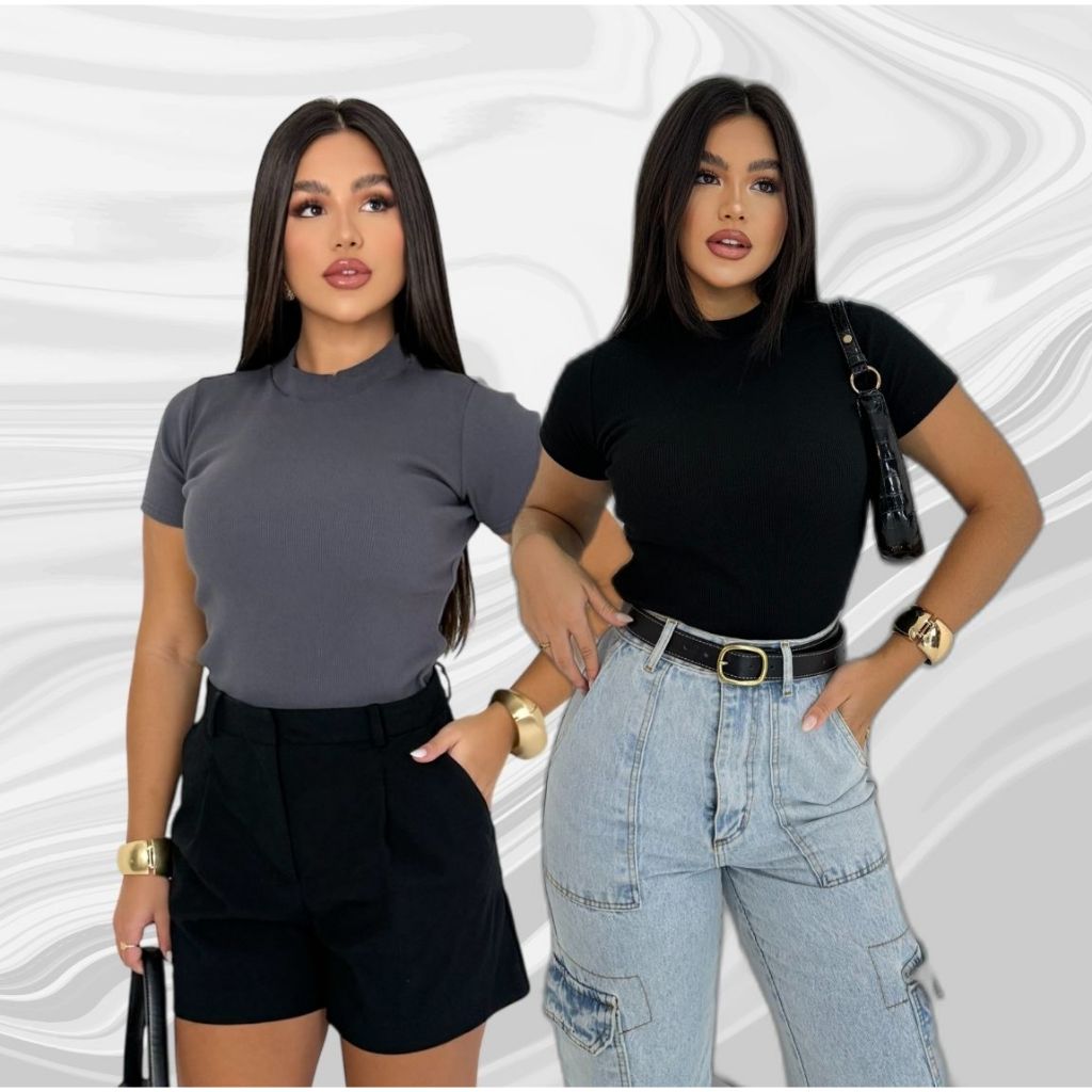 Camiseta Blusa basica canelada ribana premium moda verão 2025