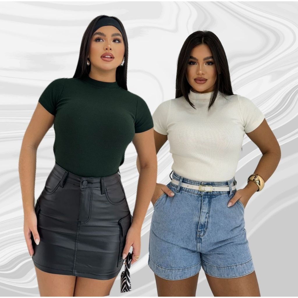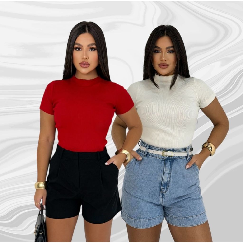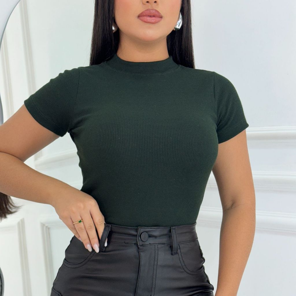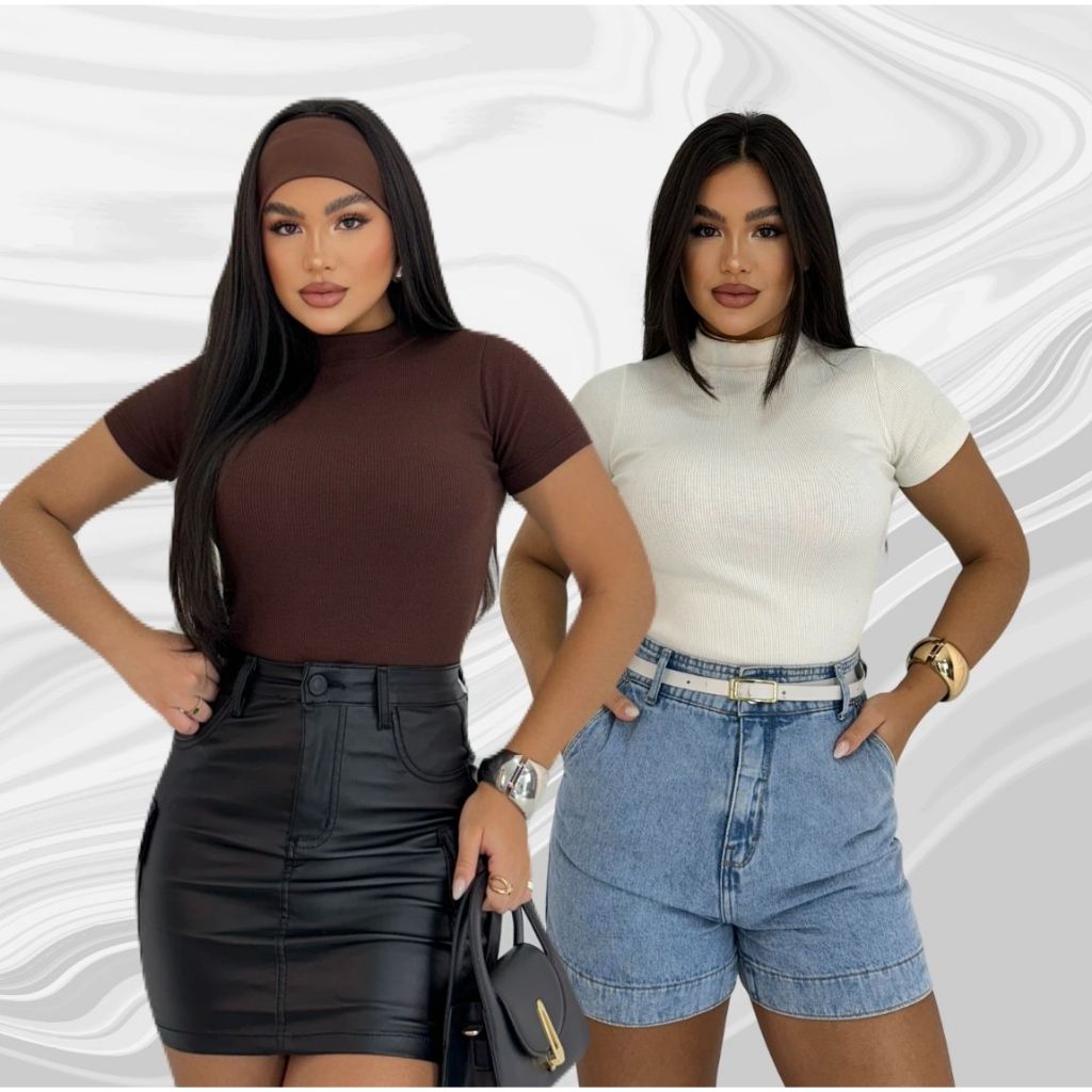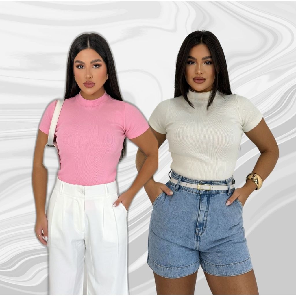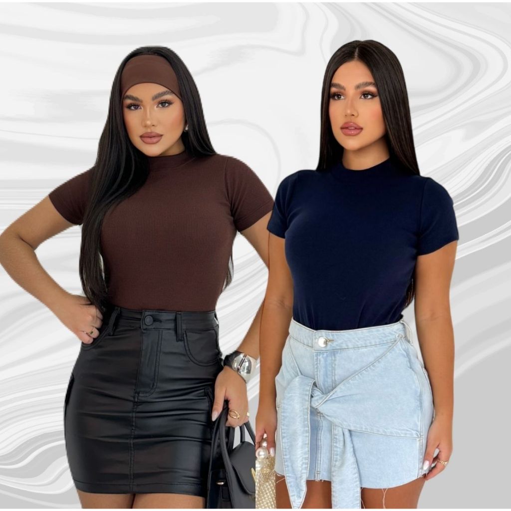 Camiseta Blusa basica canelada ribana premium moda verão 2025