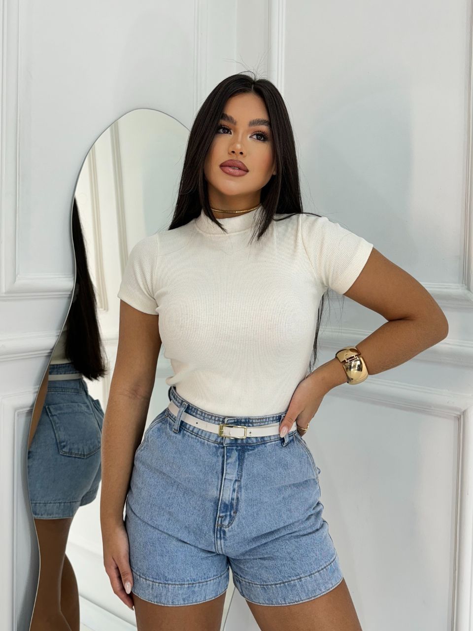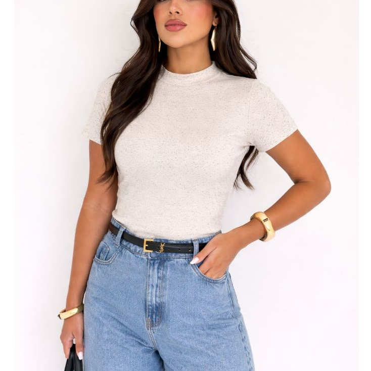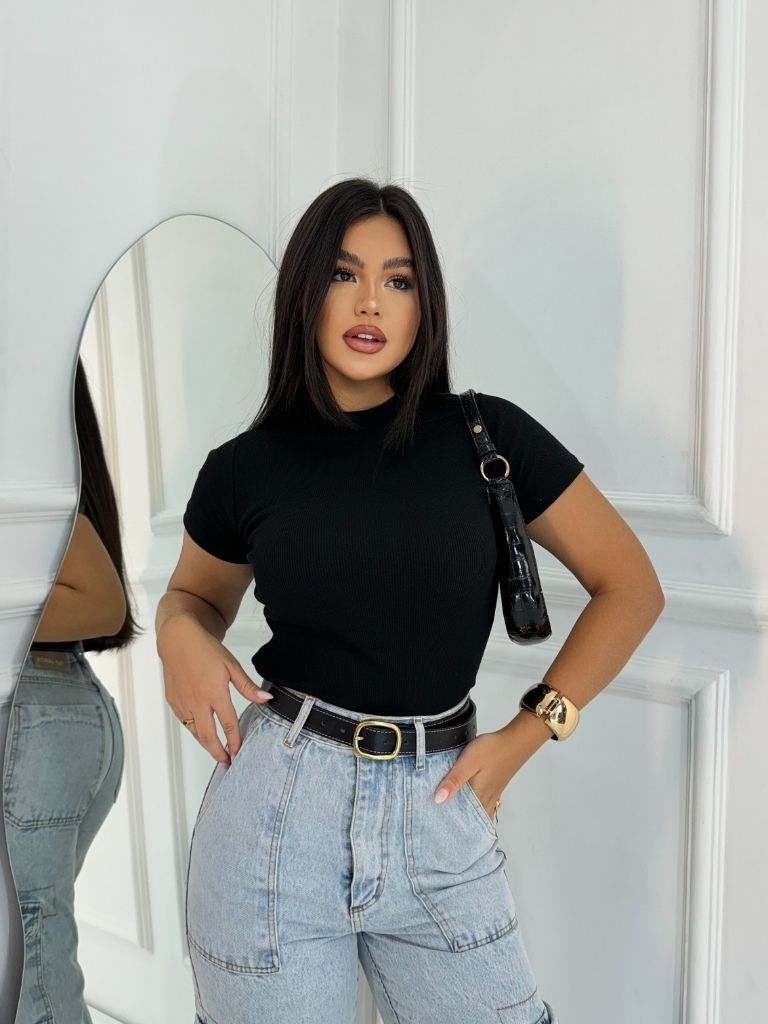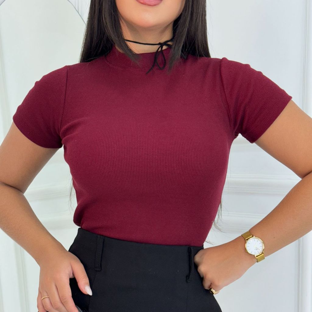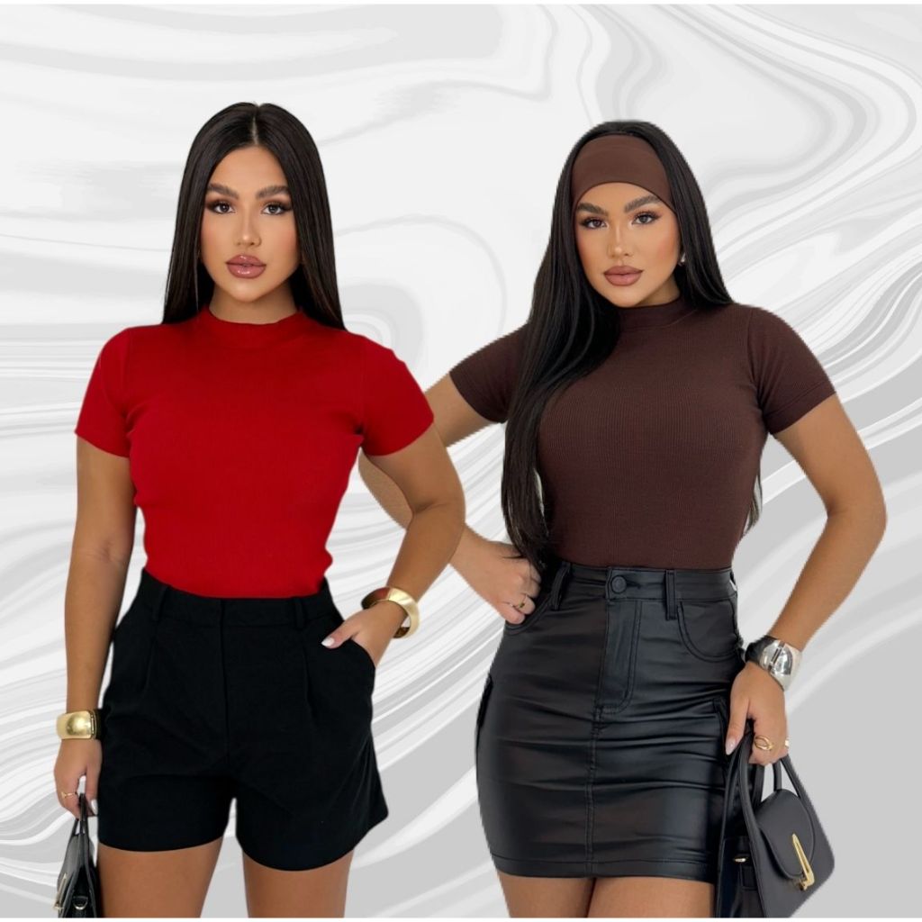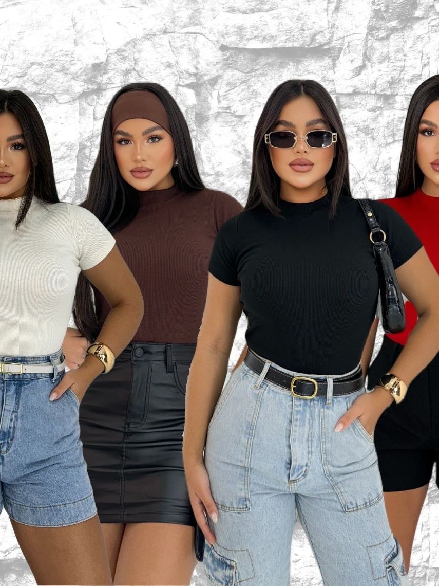Camiseta Blusa basica canelada ribana premium moda verão 2025