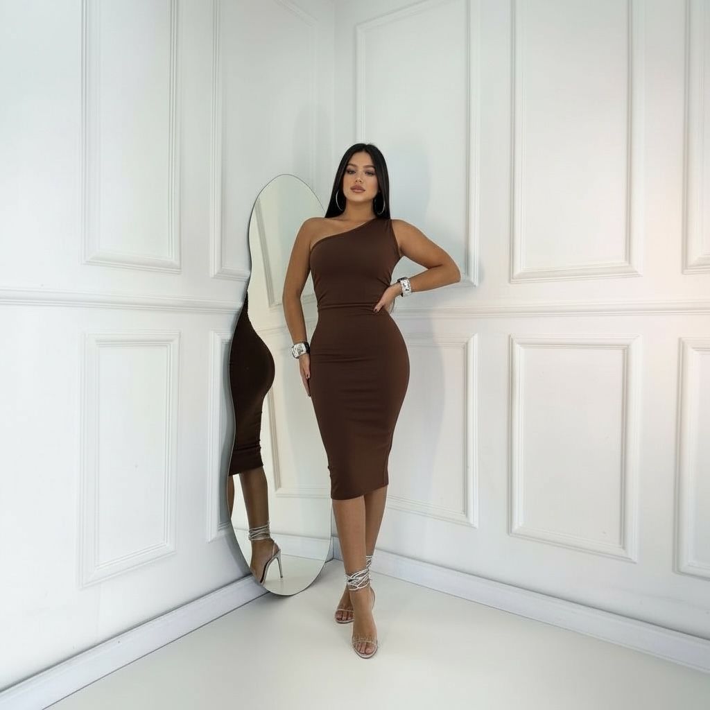 Vestido Midi Mula Manca Ombro Só Coladinho Coleção 2025 Candy Colors Ribana Canelada Premium Verão/