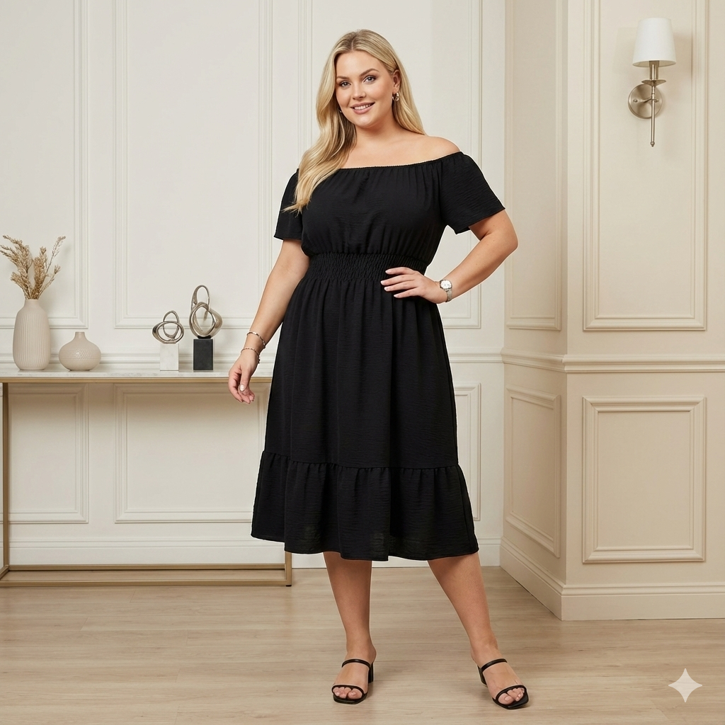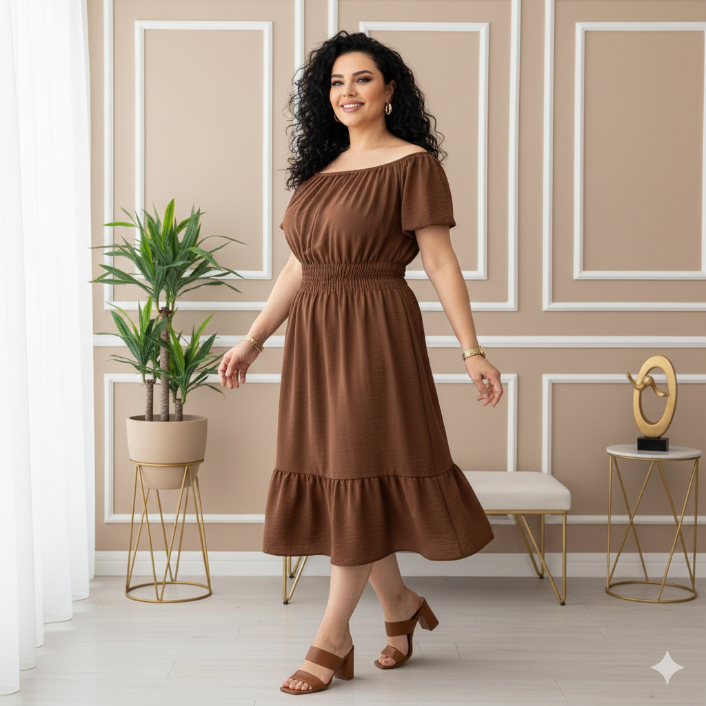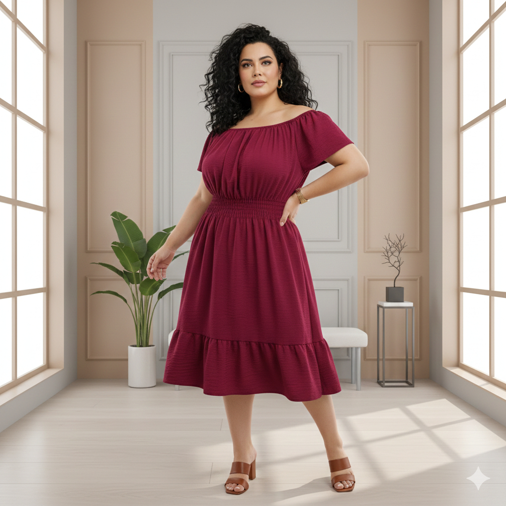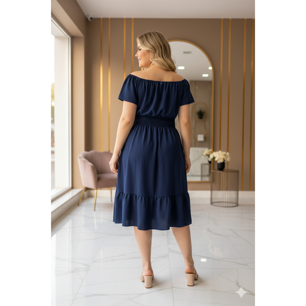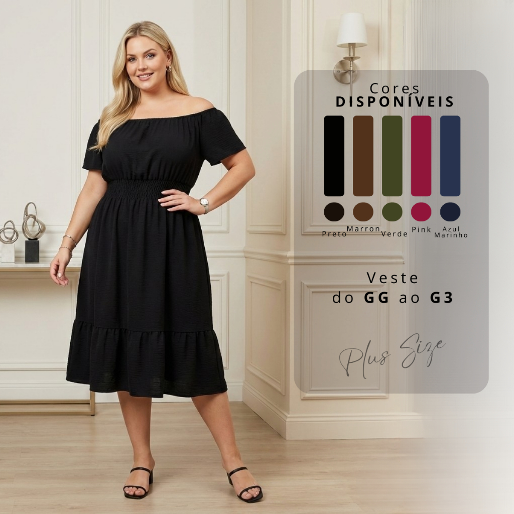 Vestido Ciganinha Plus Size Midi Duna Ombro A Ombro Gg A G3