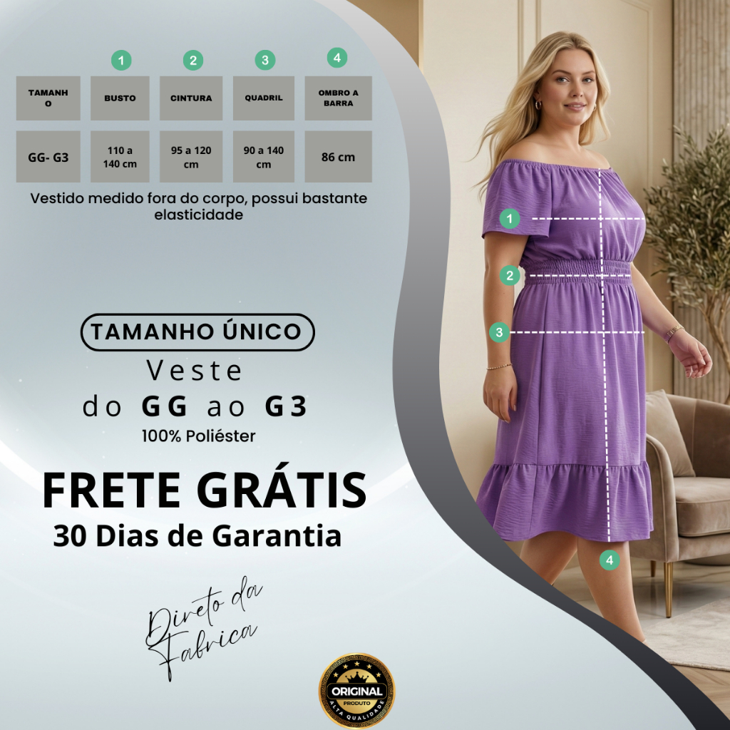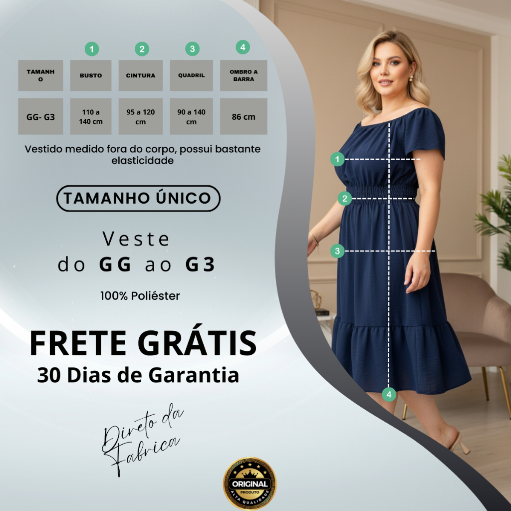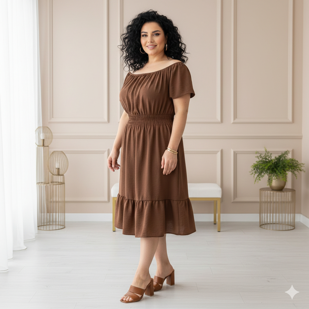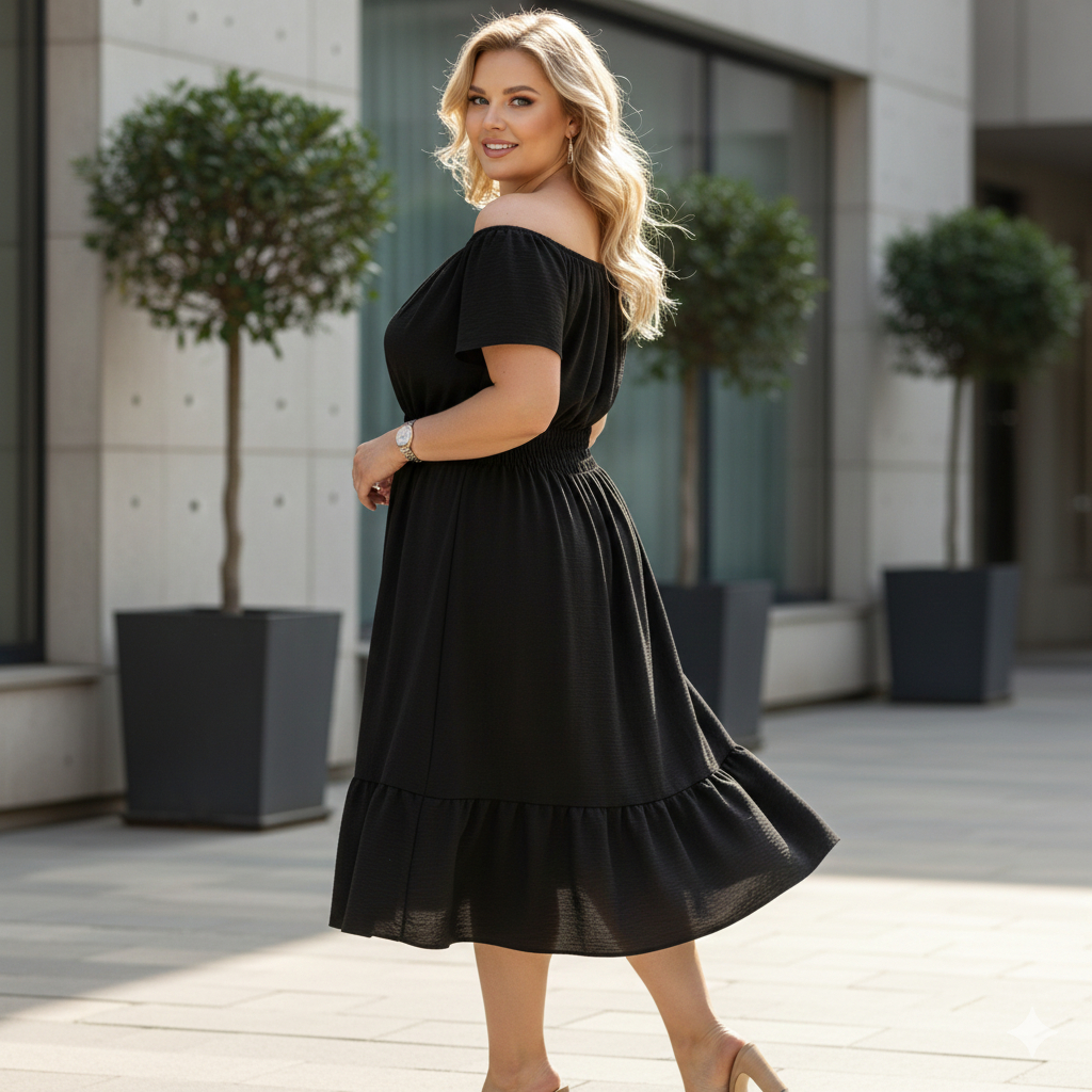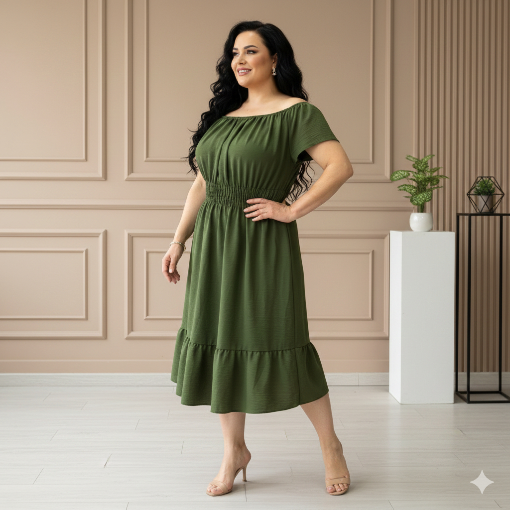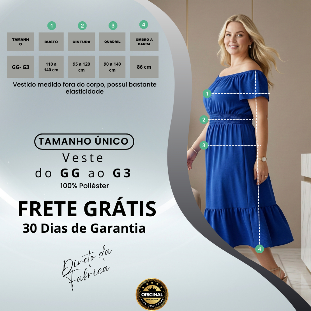 Vestido Ciganinha Plus Size Midi Duna Ombro A Ombro Gg A G3