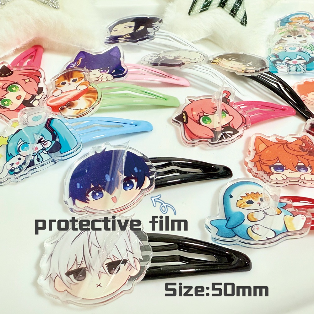 Alfinetes De Cabelo Acrílicos Bloqueio Azul Bonito Dos Desenhos Animados Menina Anime 50mm Grampos Acessórios Para