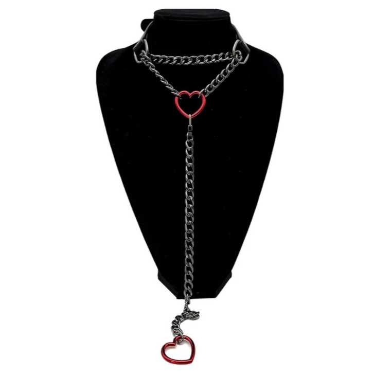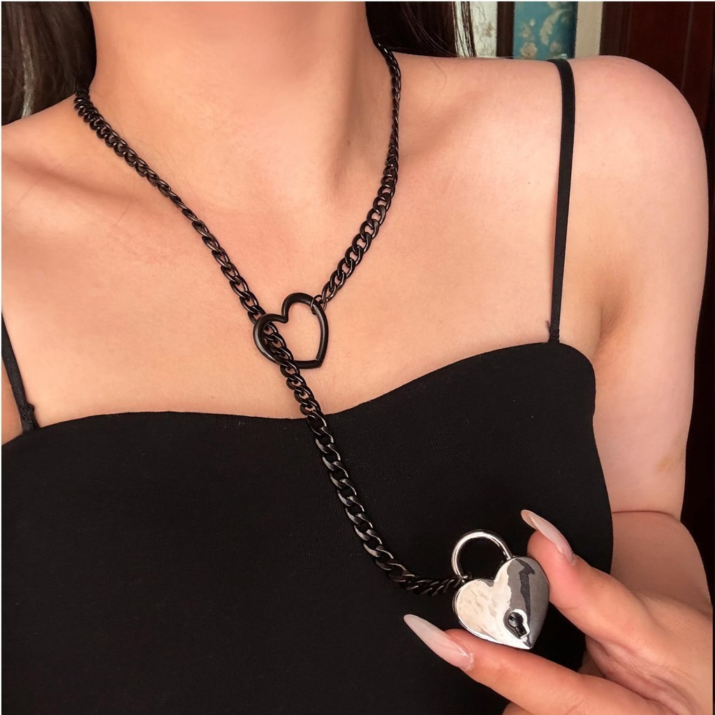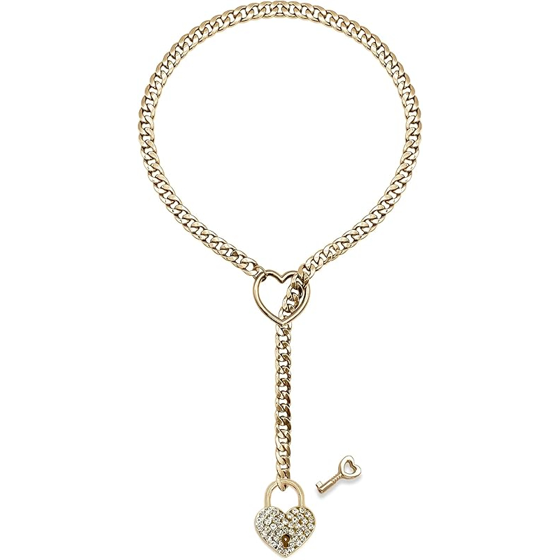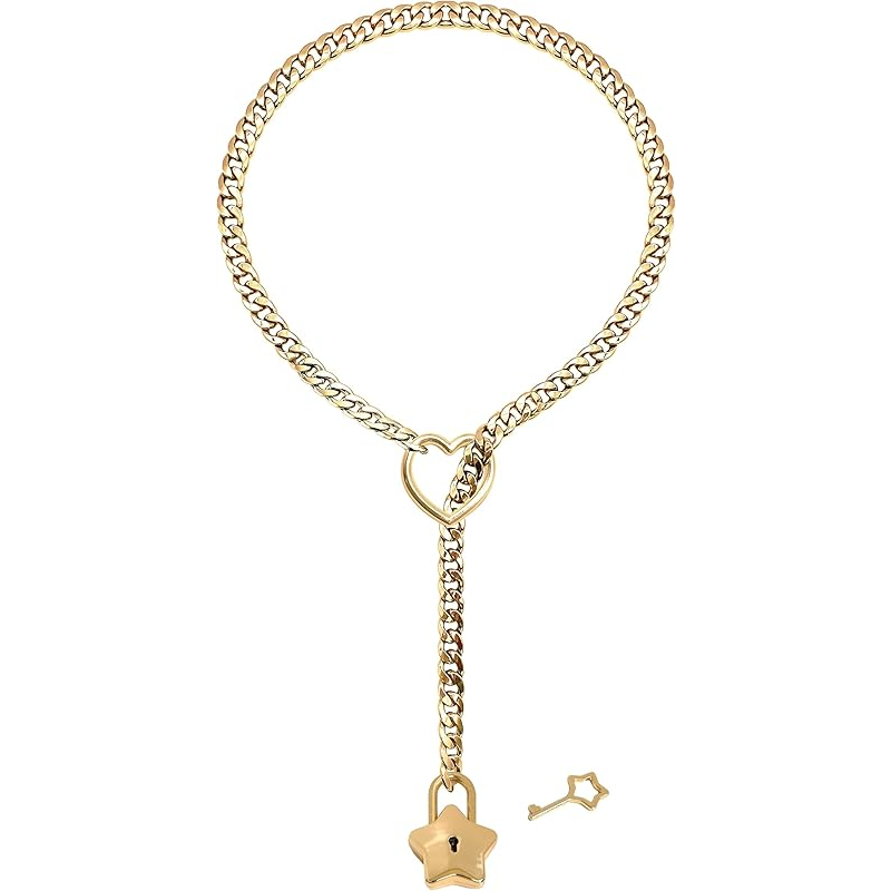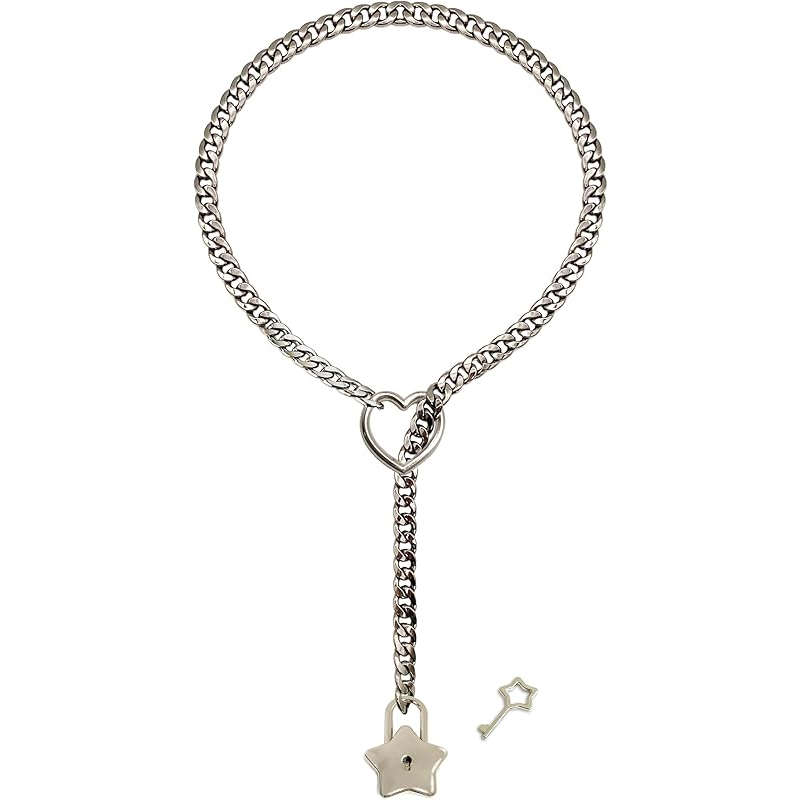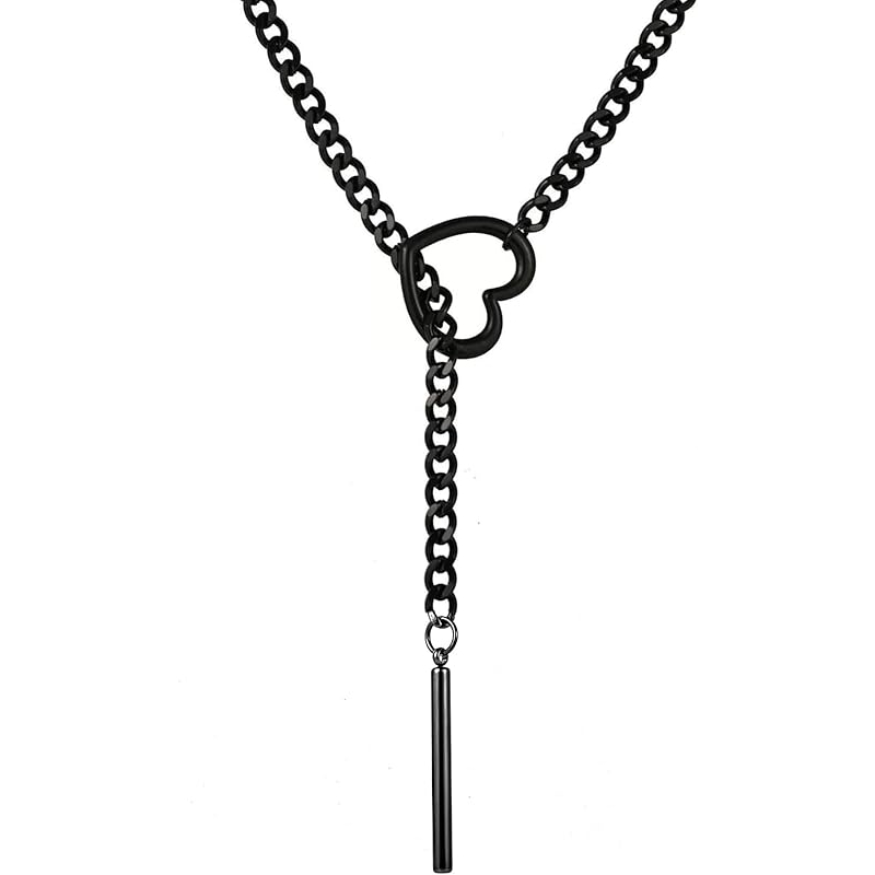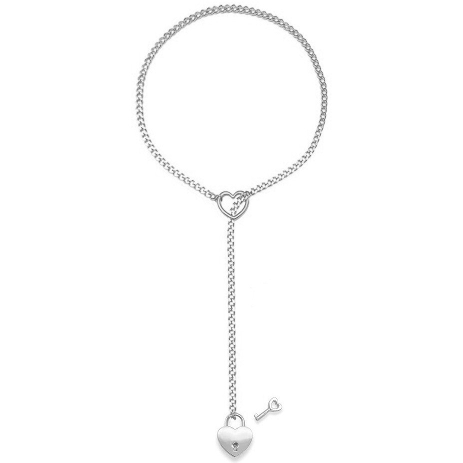 Colar de corrente deslizante feminino, Anel de O em forma de coração, Colar chave ajustável em forma de Y