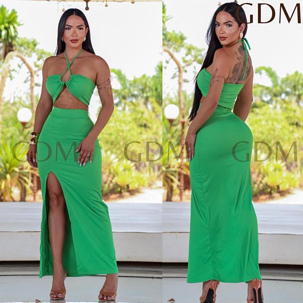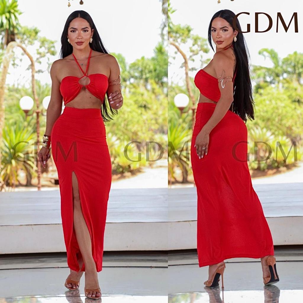 Conjunto Longo Feminino Saia Cropped P/M/G