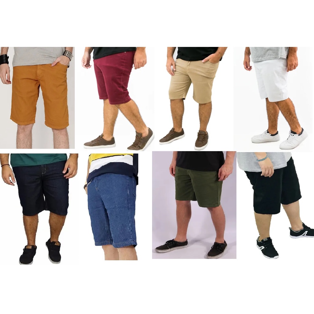 Bermuda Masculina Jeans Sarja Com Lycra Colorida Plus Size Tamanho Grande Algodão Com elastano