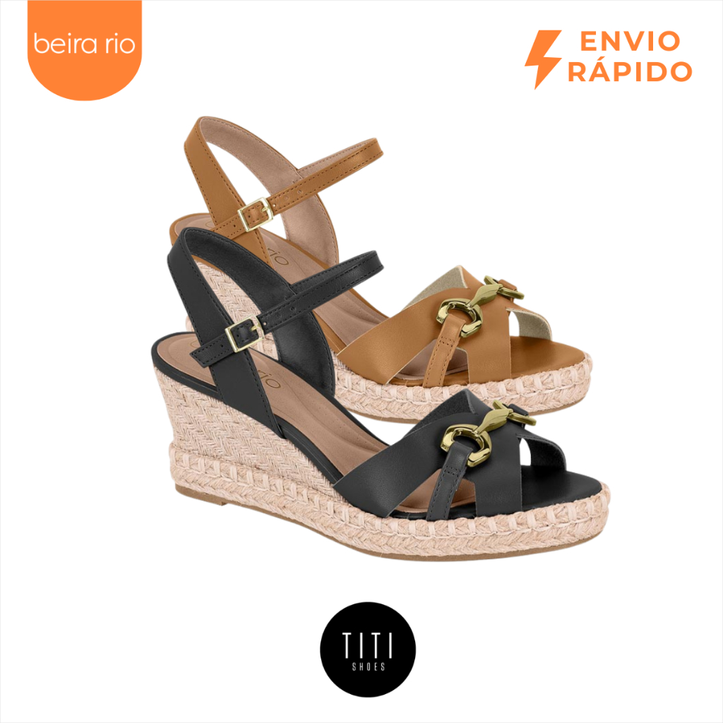 Sandália Anabela Beira Rio Original Salto Sisal Corda Palha Confortável Verão Casual Feminina