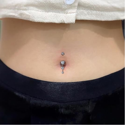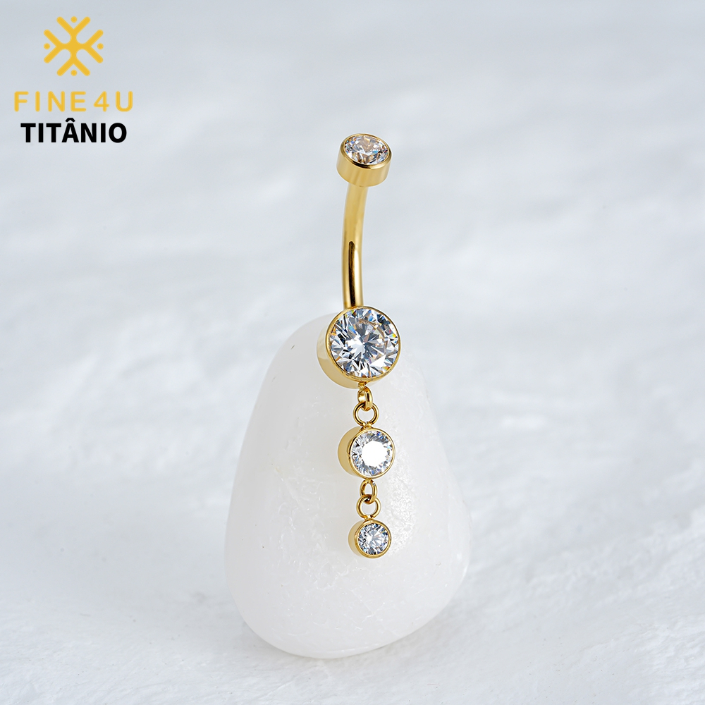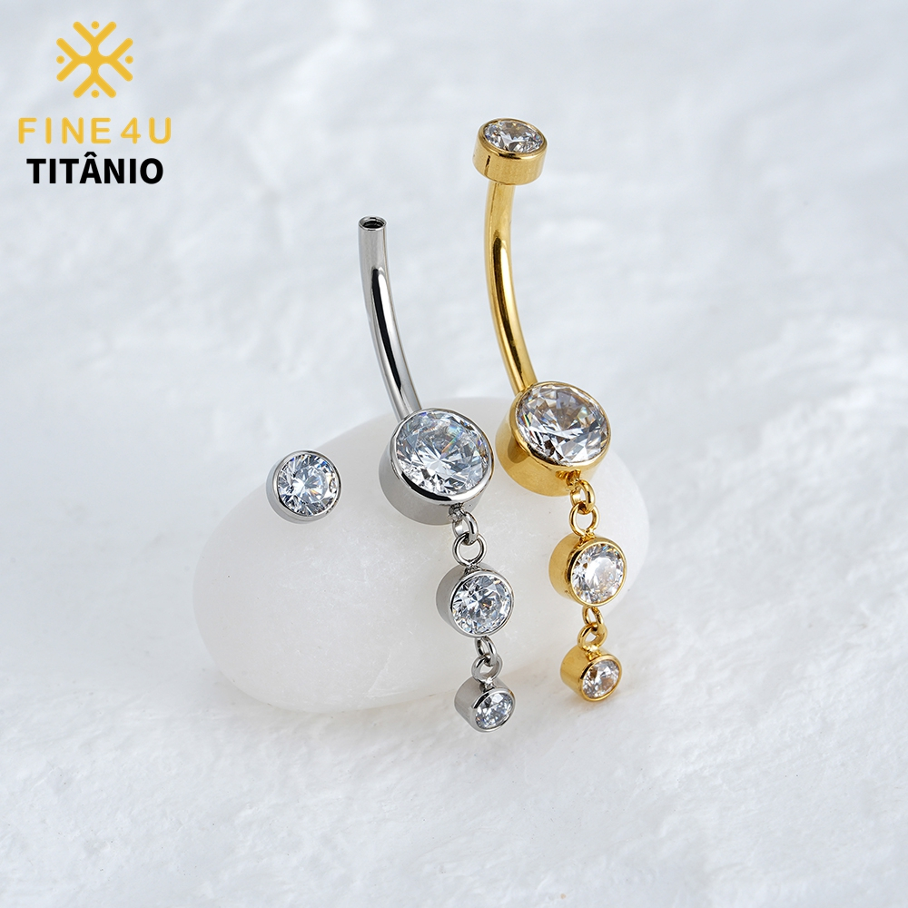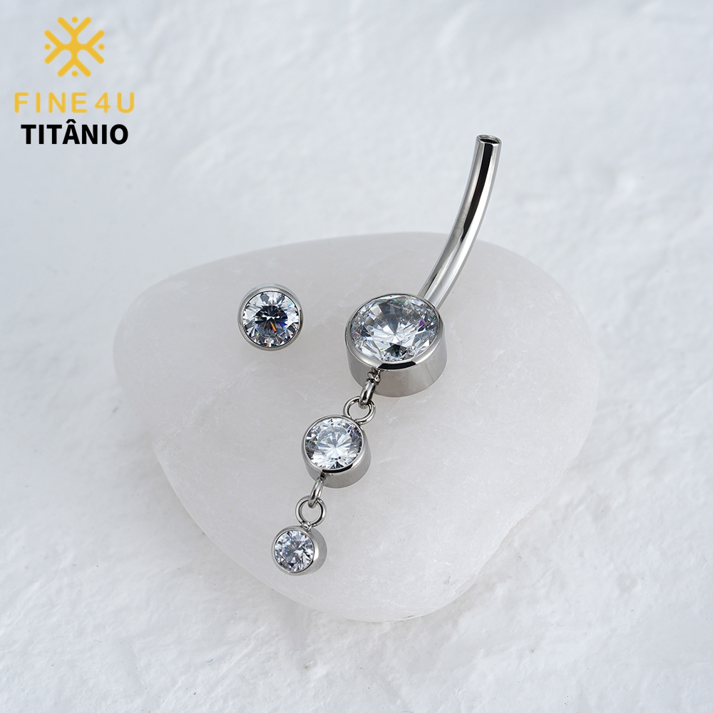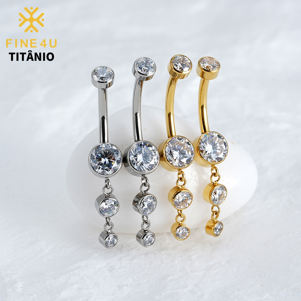 FINE4U Piercing Umbigo Com Pingente Zircônias 100% Titânio Lavável Hipoalergênica 10/12mm