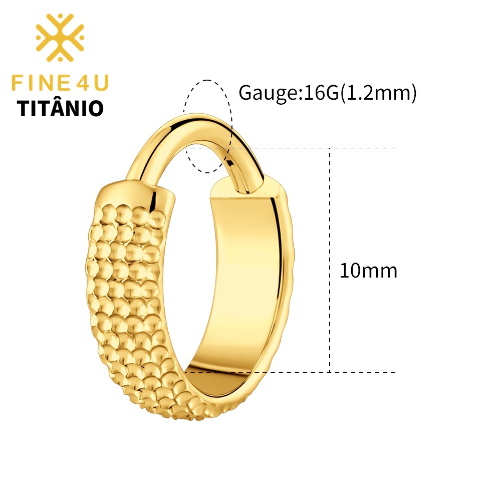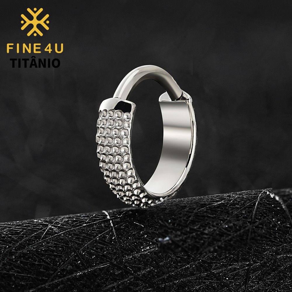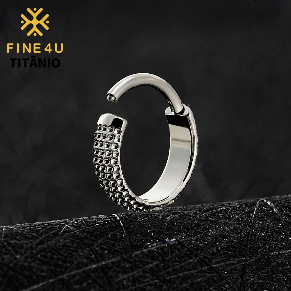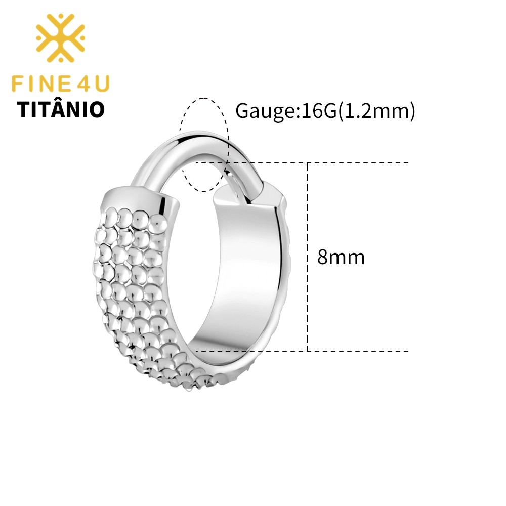 FINE4U 1pcs Brinco de Titânio Grande Concha Martelada Clicker Hoop 8/10/12mm Lóbulo Conch Helix