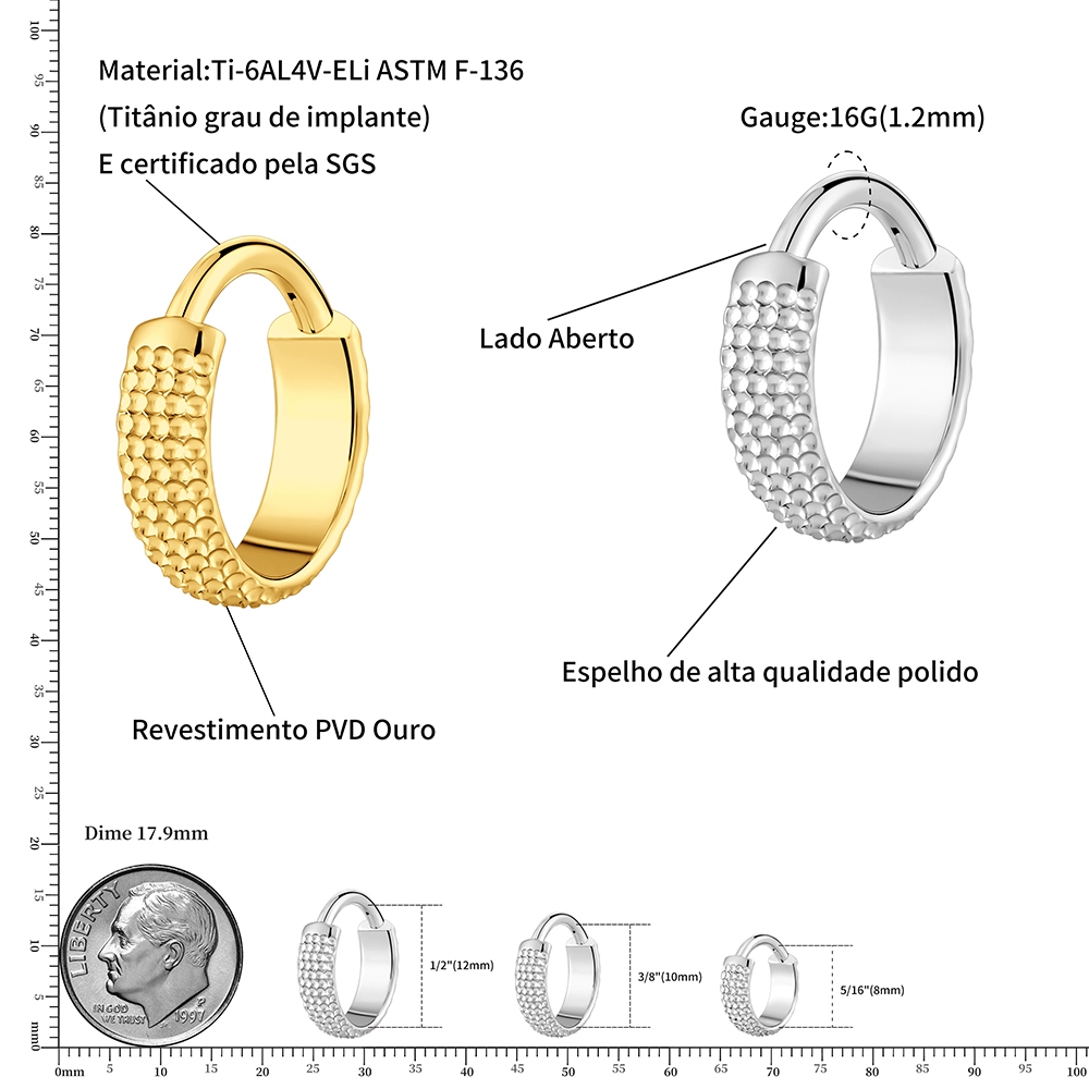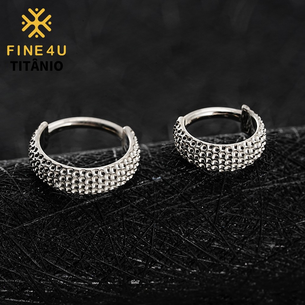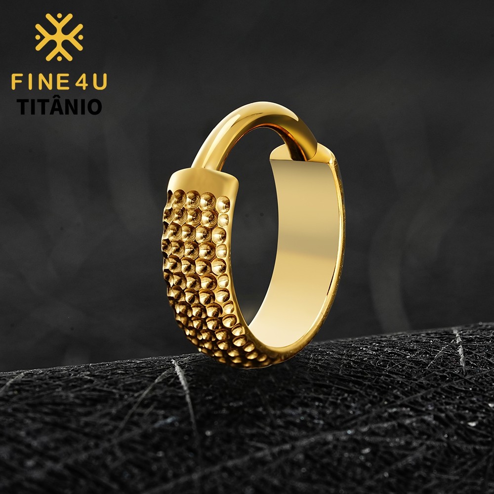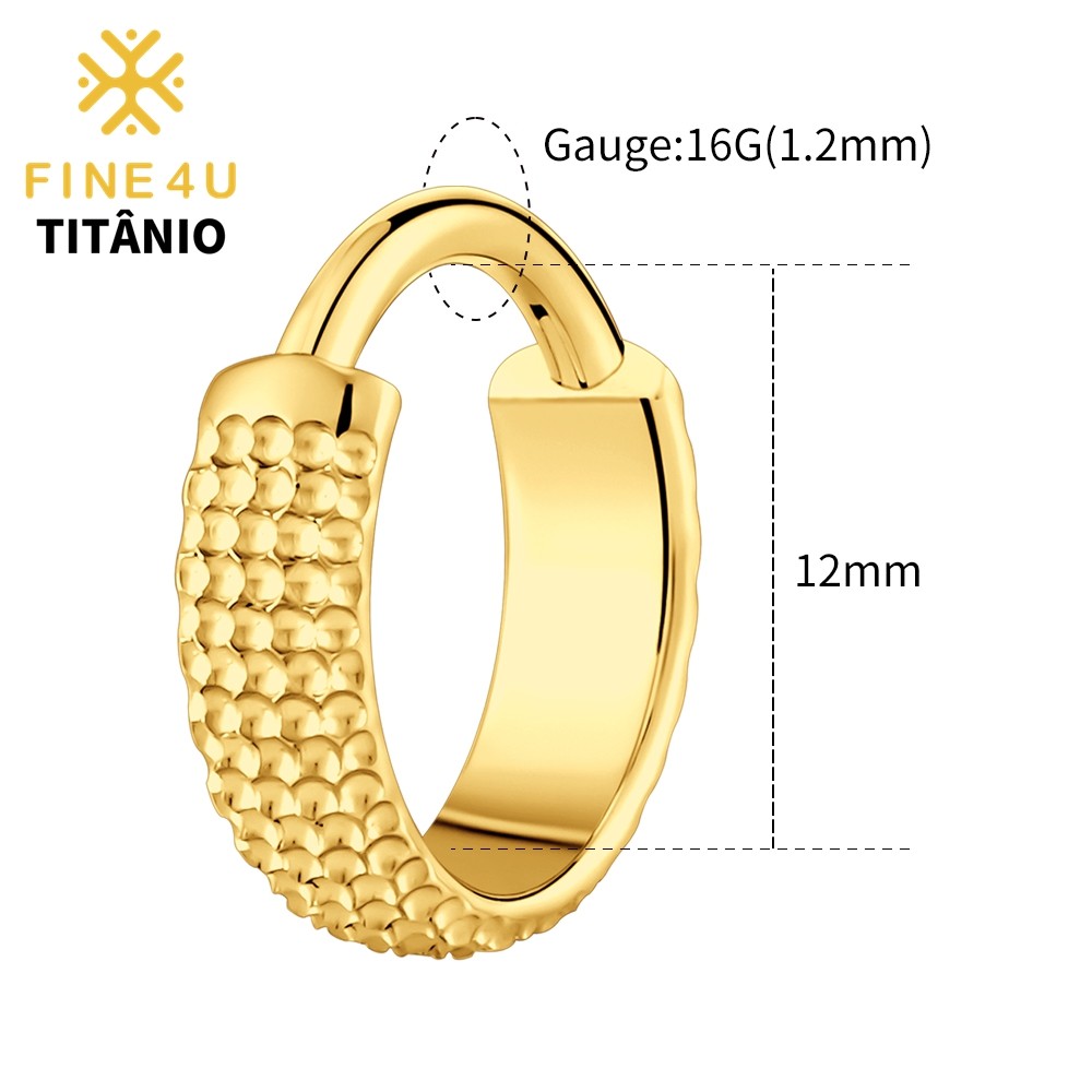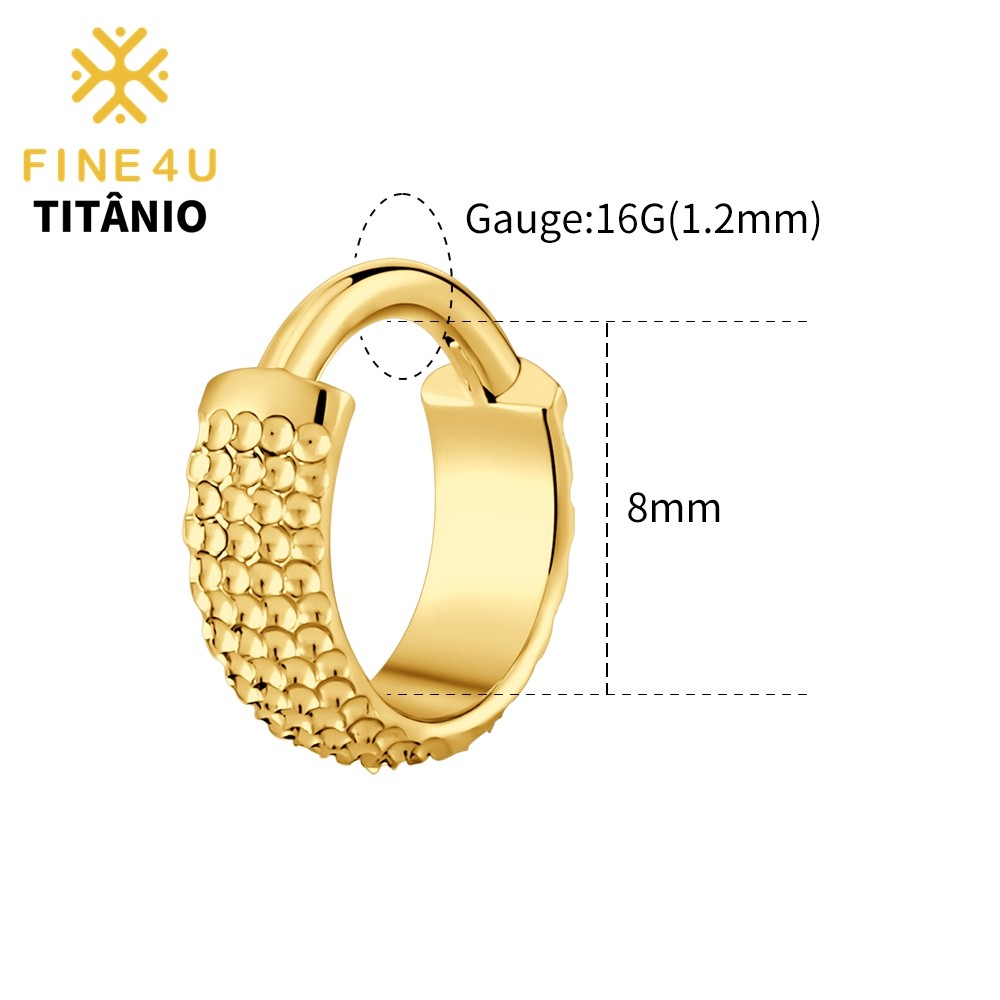 FINE4U 1pcs Brinco de Titânio Grande Concha Martelada Clicker Hoop 8/10/12mm Lóbulo Conch Helix