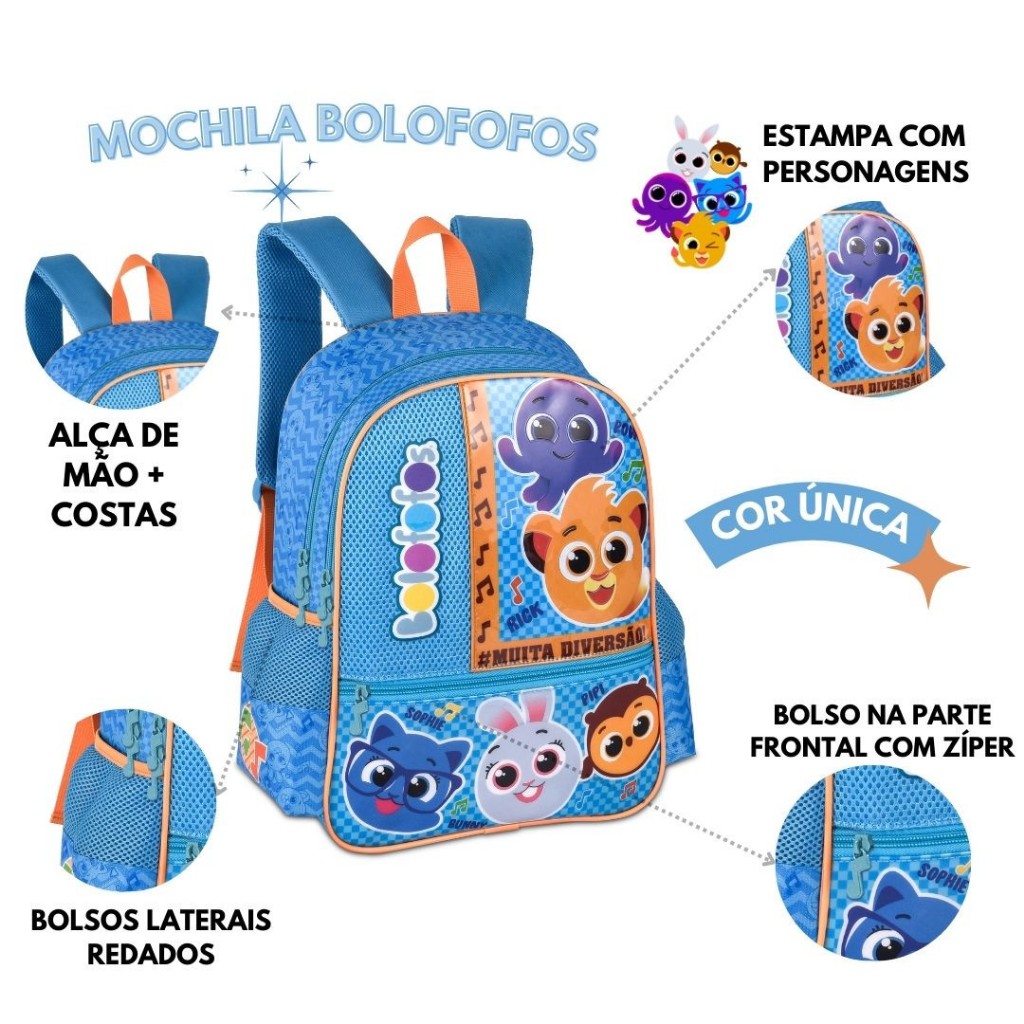Mochila De Costas Bolofofos Escolar Azul Infantil Meninos Masculina Grande Espaçosa