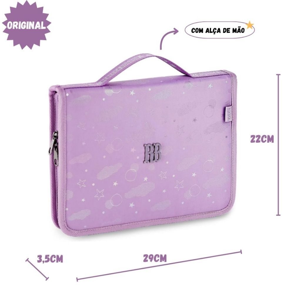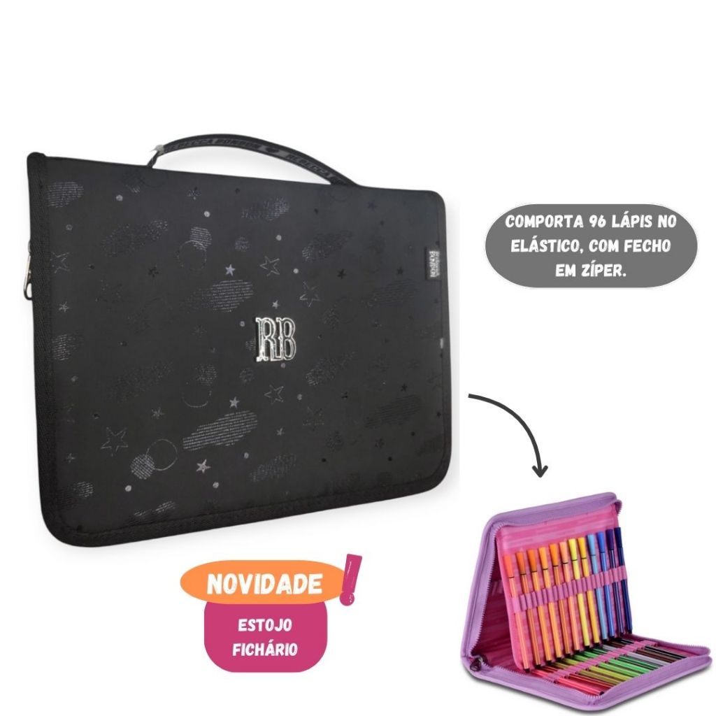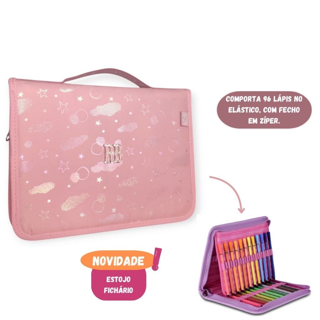 Estojo Fichário 96 Pens Rebecca Bonbon Elastico Artístico Holografico Original Escolar Aulas