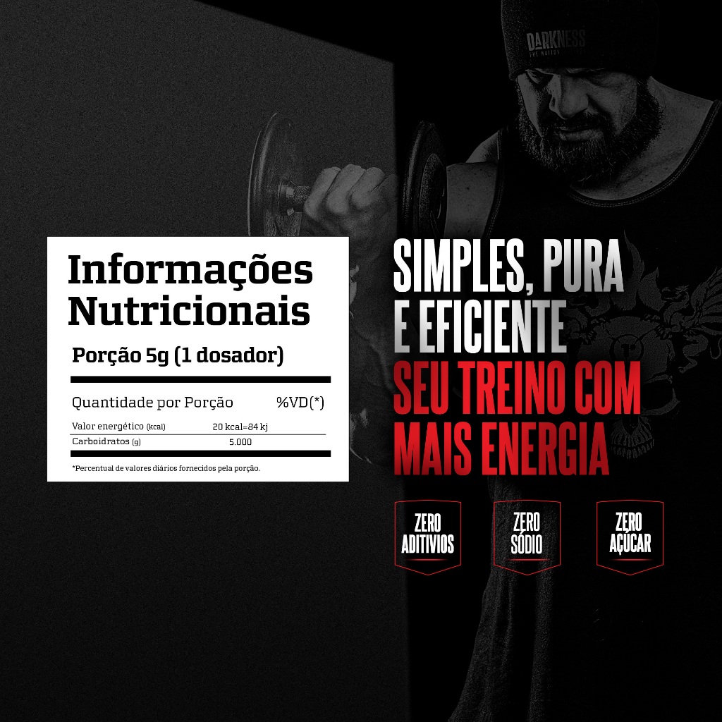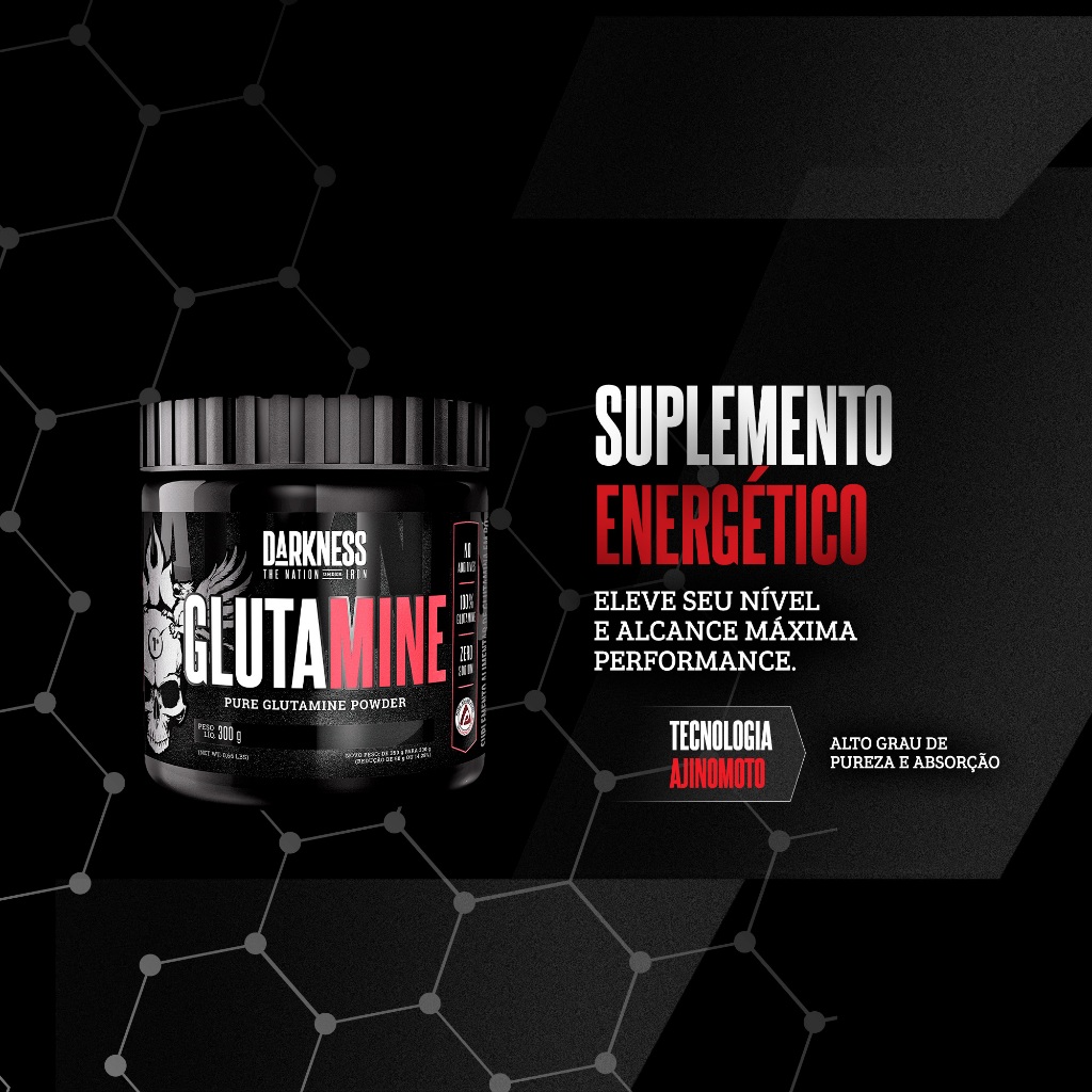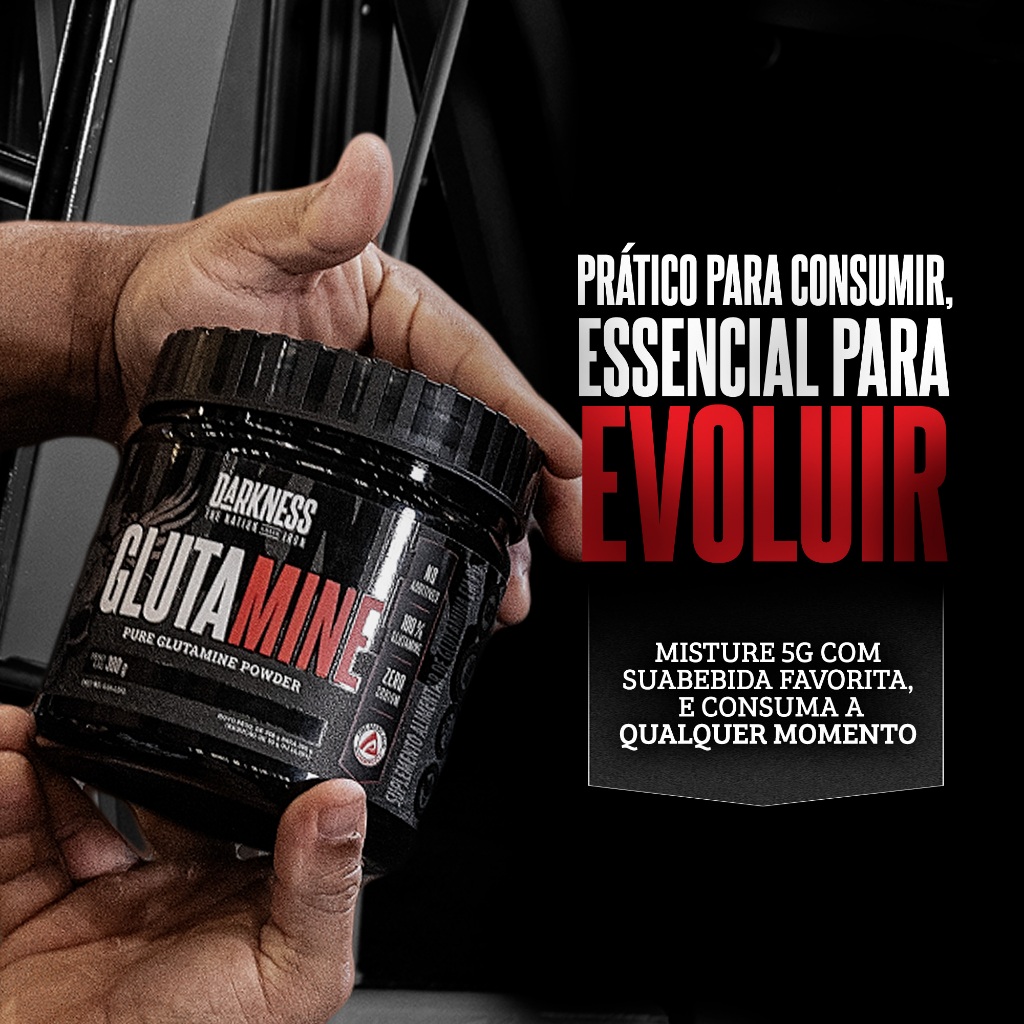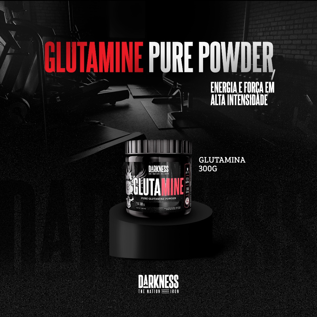 Darkness Glutamine Sabor Neutro Pura Glutamina em Pó Suplemento para Máximo Desempenho e Fortalecimento Muscular - 300g