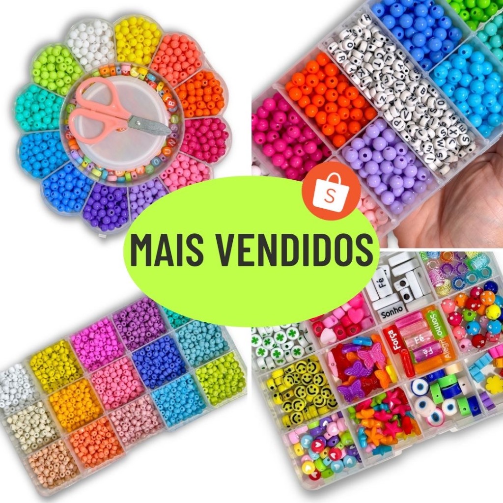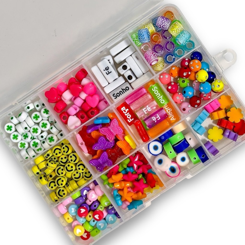 Kit Caixinha De Miçangas Coloridas Colar Pulseira e Bijuterias.