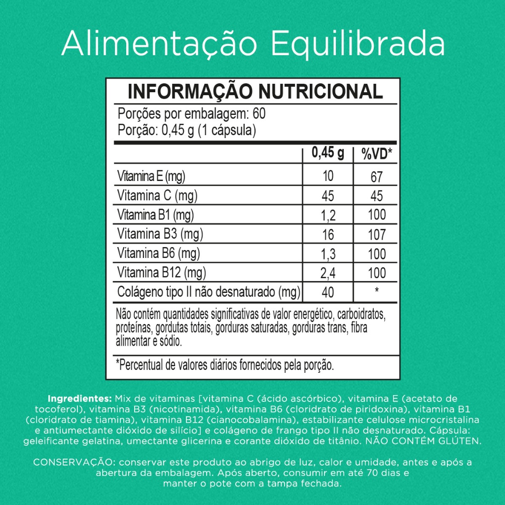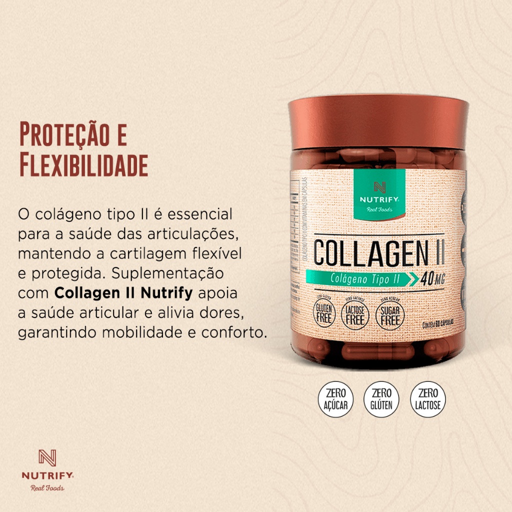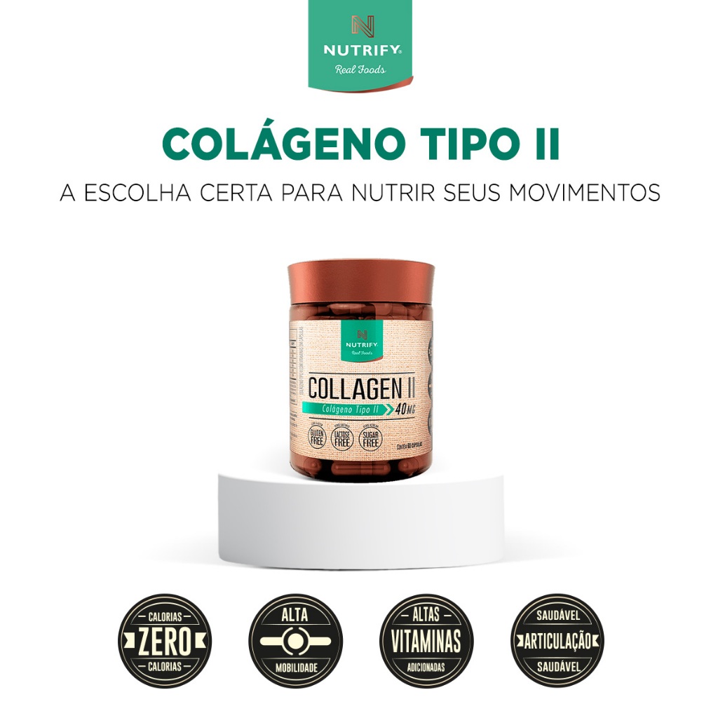 Nutrify Collagen II Colágeno Tipo II Puro – Não Hidrolisado, Sem Glúten, Açúcar e Lactose – 60 Caps