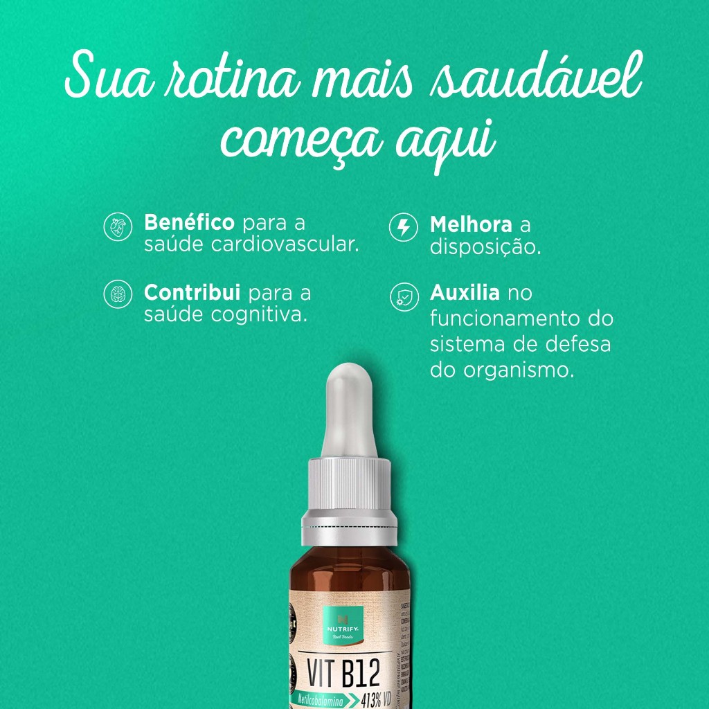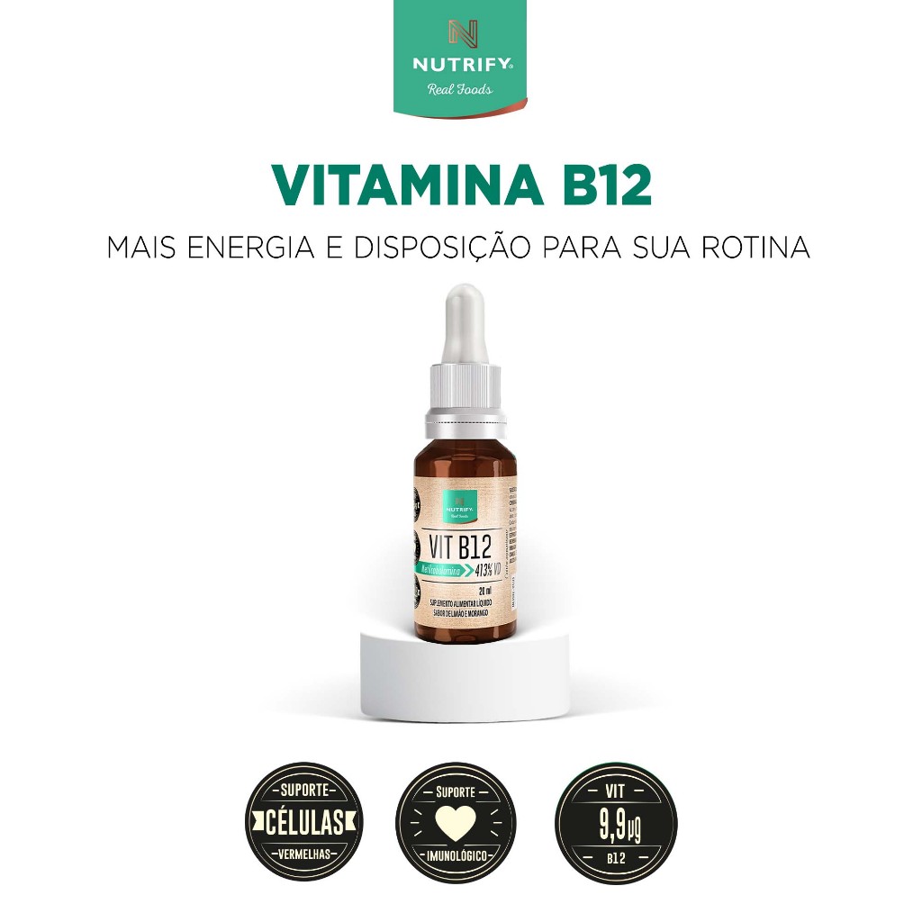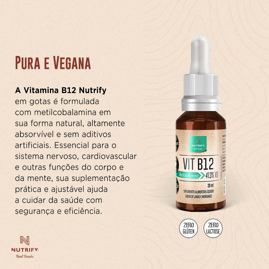 Nutrify Vitamina B12 Gotas – Limão e Morango – Alta Concentração – Ideal para Vegetarianos