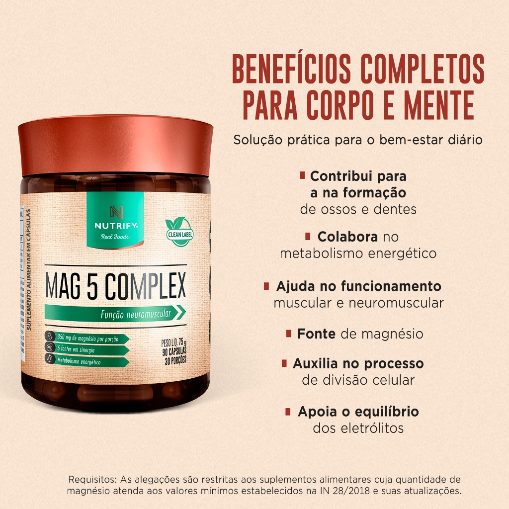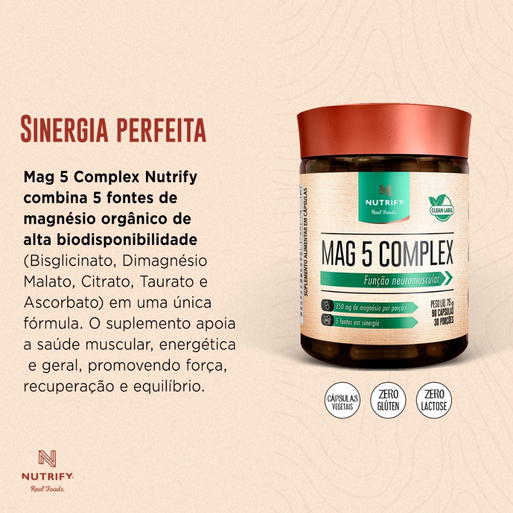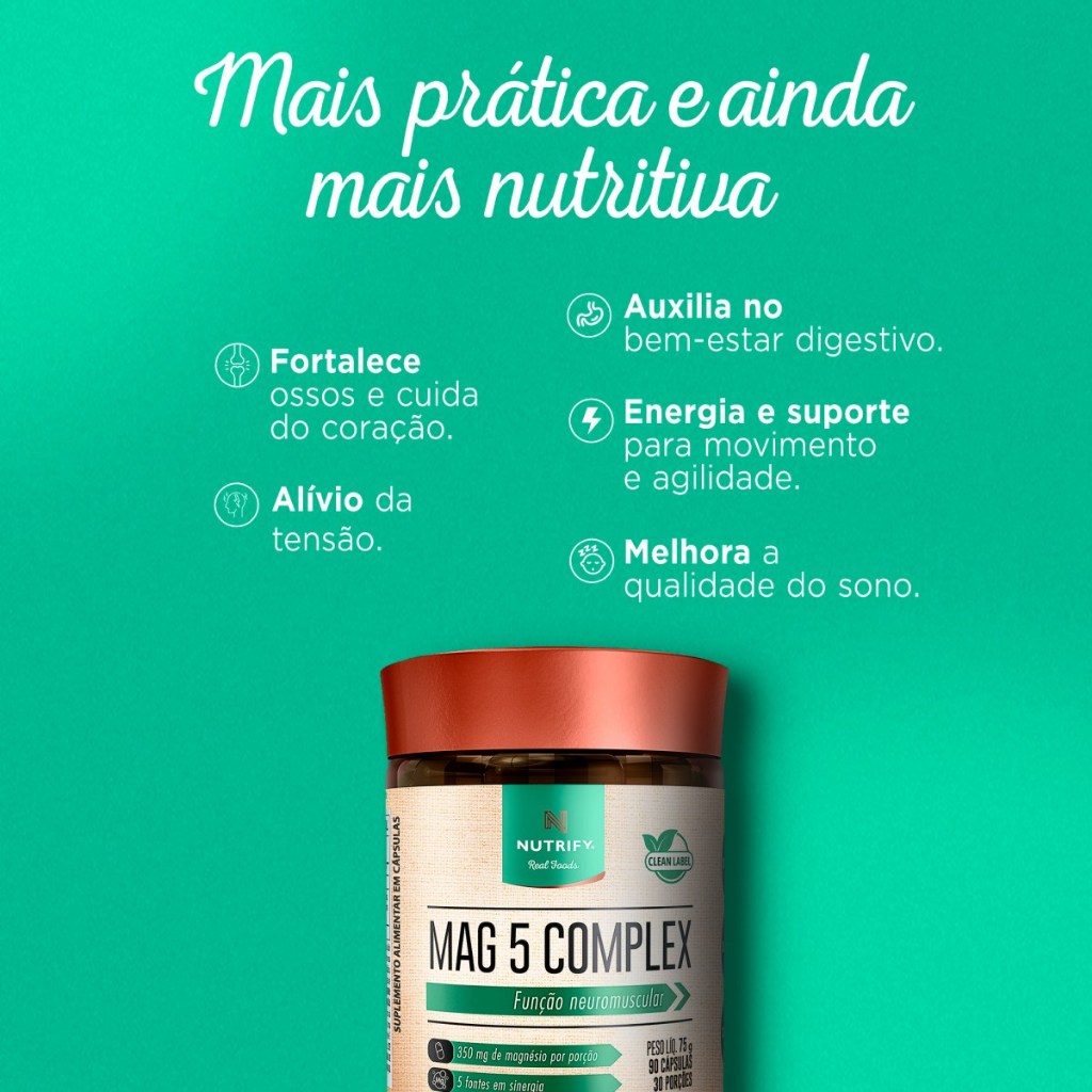 Nutrify Complexo Mag 5 - Fontes de Magnésio Equilíbrio e Bem-Estar - 90 Cápsulas