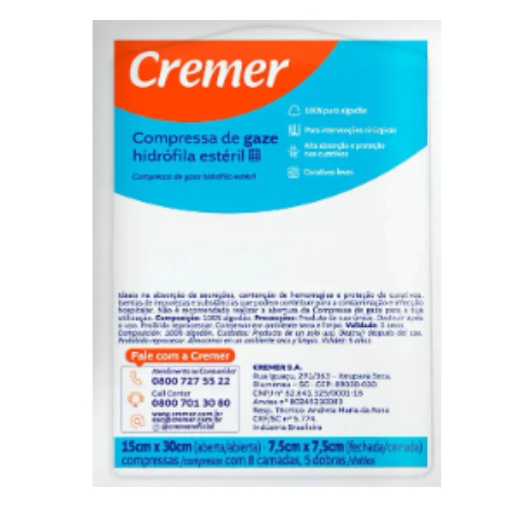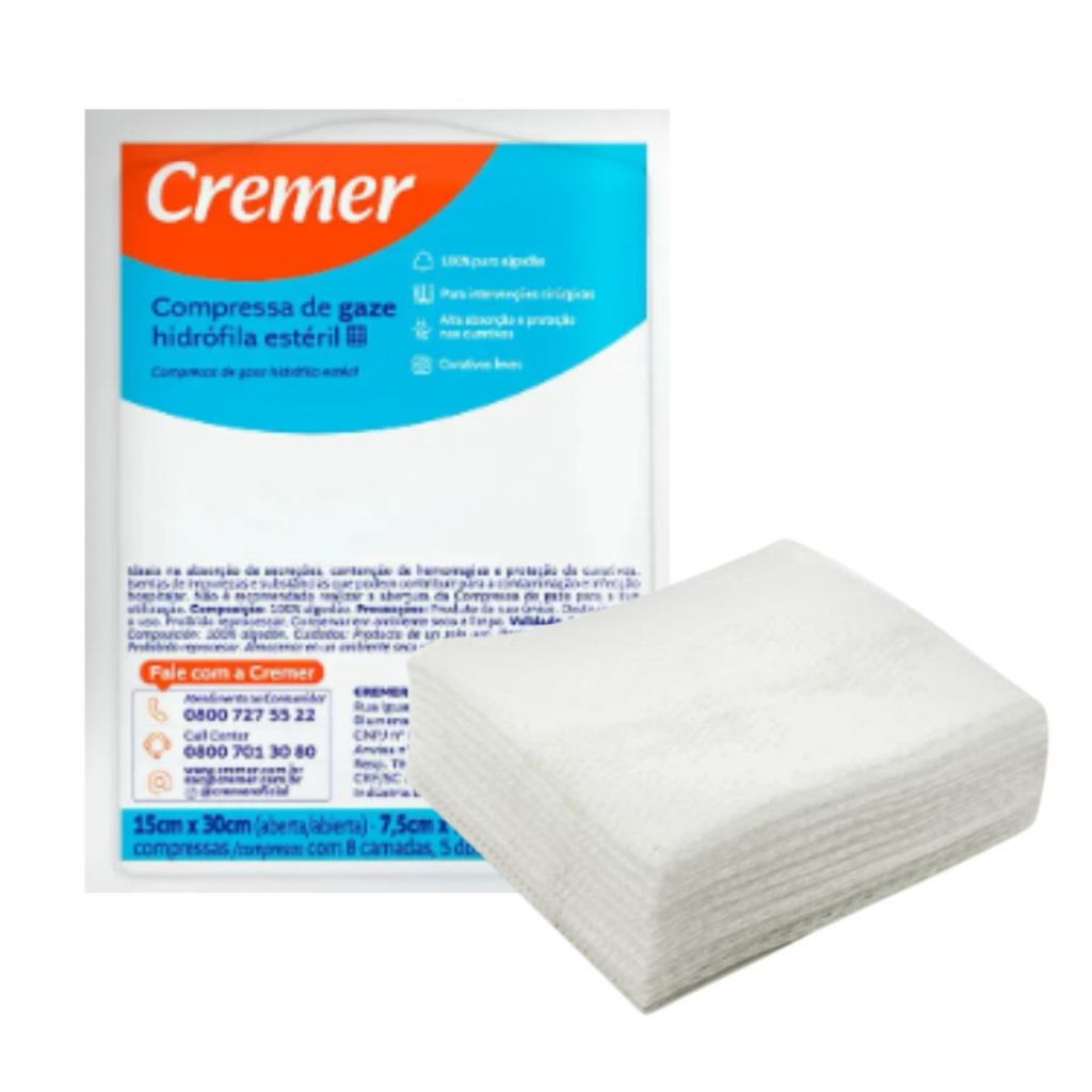 Gaze Estéril Cremer Curativo Cicatrização Higiene 7,5 X 7,5 Cm 100 A 300 Unidades