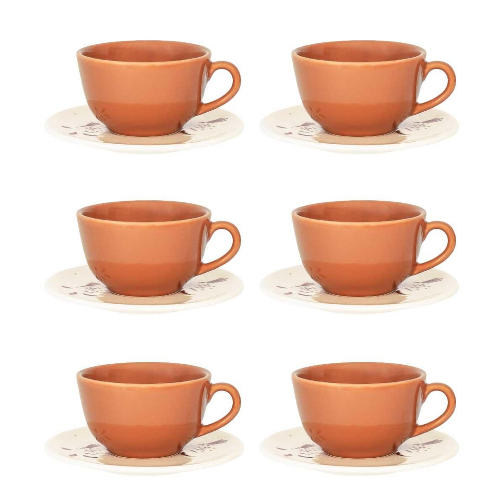 Jogo de 6 Xícaras Chá 200ml com pires Oxford Unni Orquídea