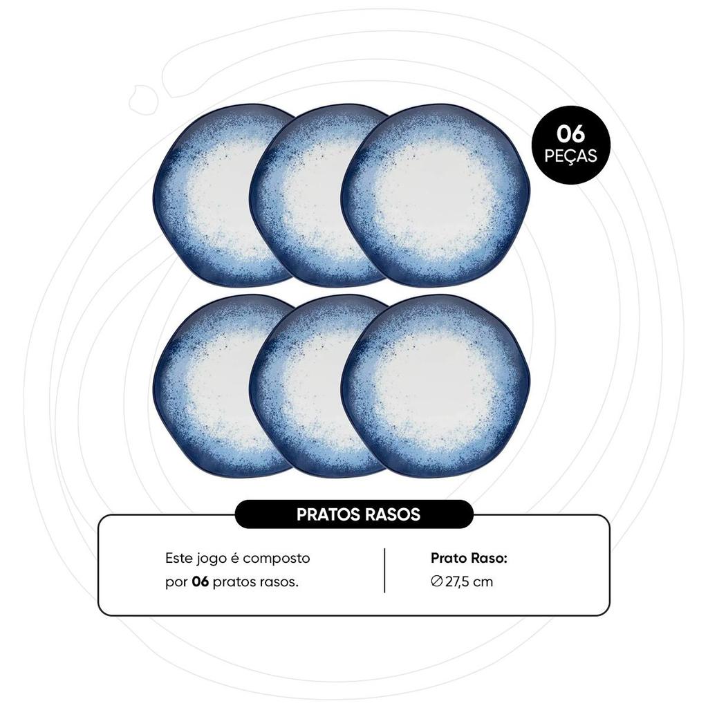 Jogo de 6 Pratos Rasos 27,5cm Oxford Ryo Galápagos