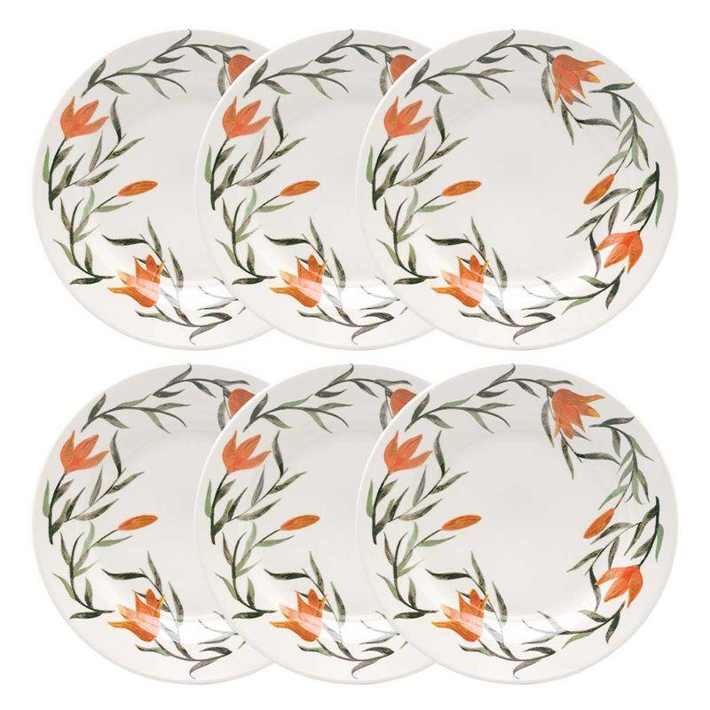 Jogo De 6 Pratos Rasos 24 Cm Donna Lírios
