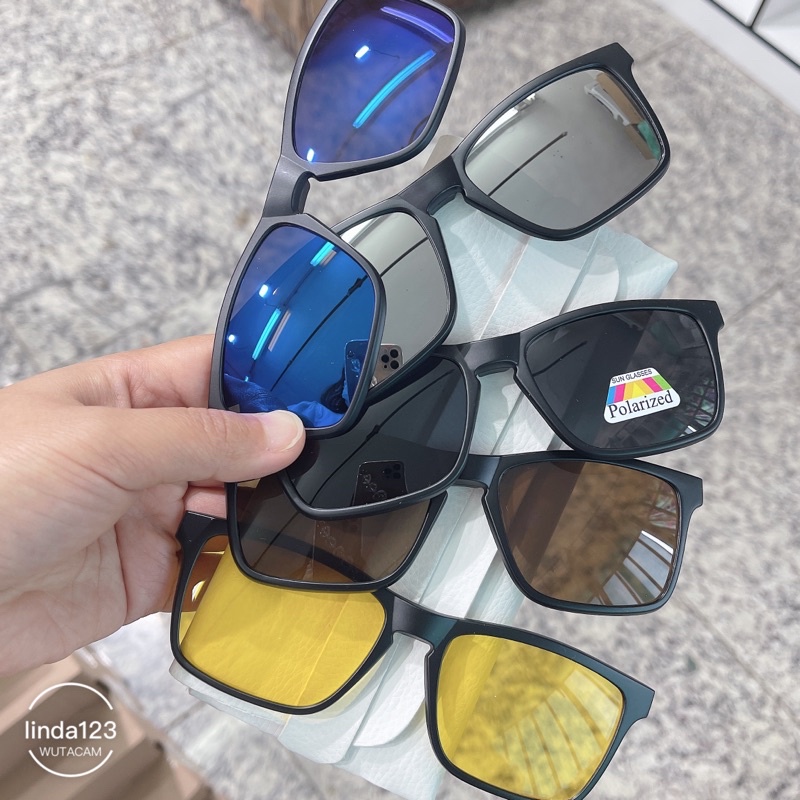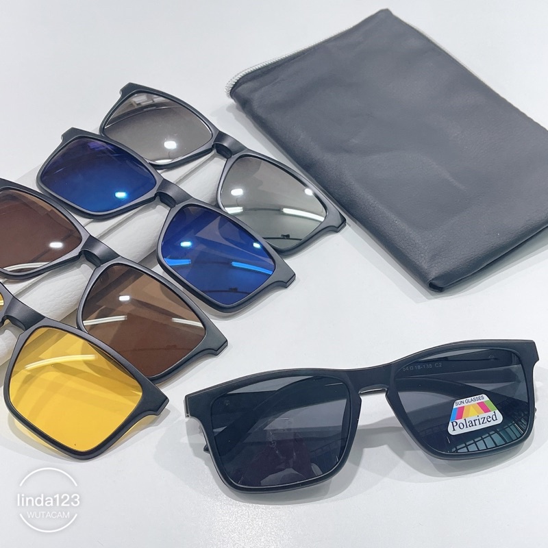 Armação de Óculos Masculino Clipon 5 Lentes Grau + Sol Quadrado Lentes Polarizada 2268