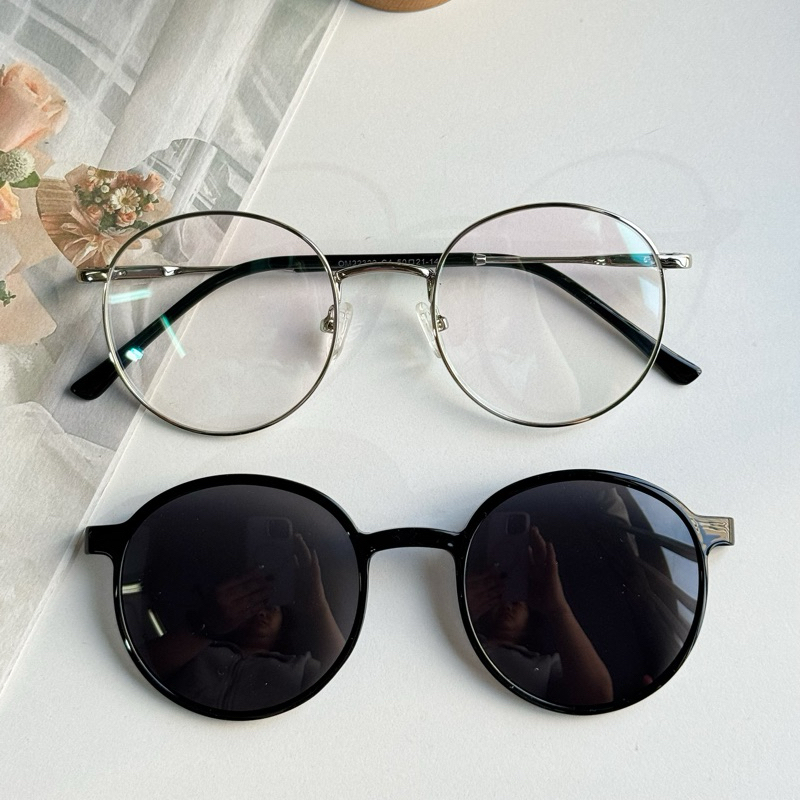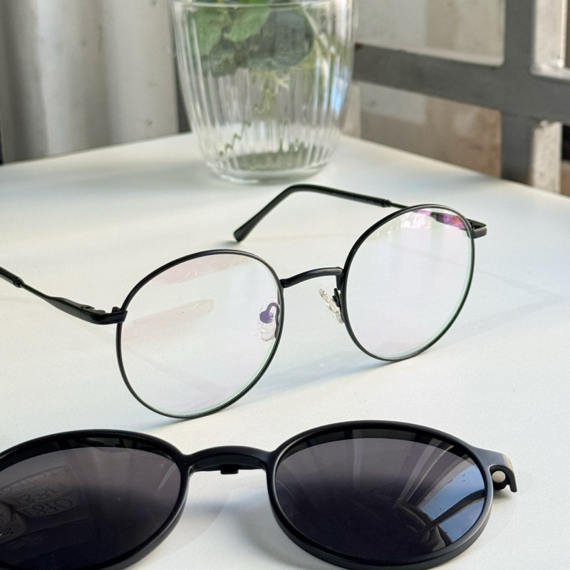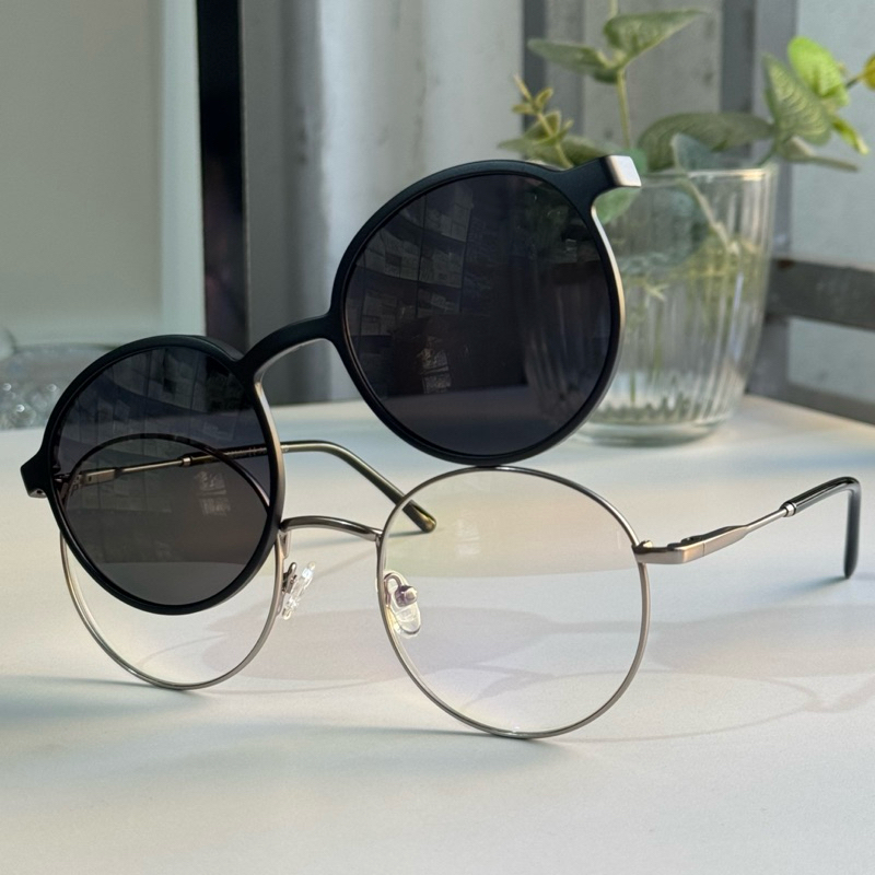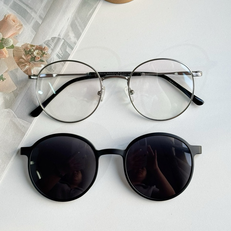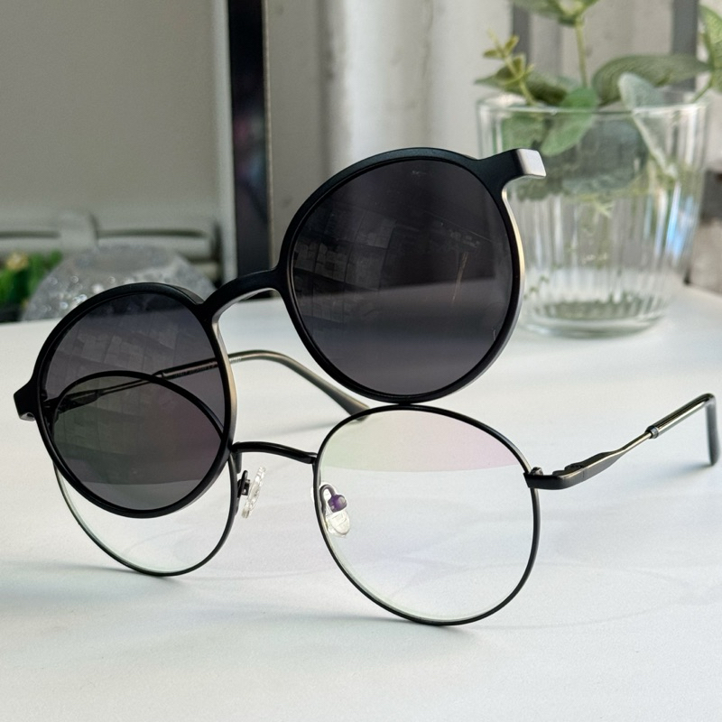 Armação de óculos para grau Clipon 2 em 1 Unissex Redondo lente polarizada 22322