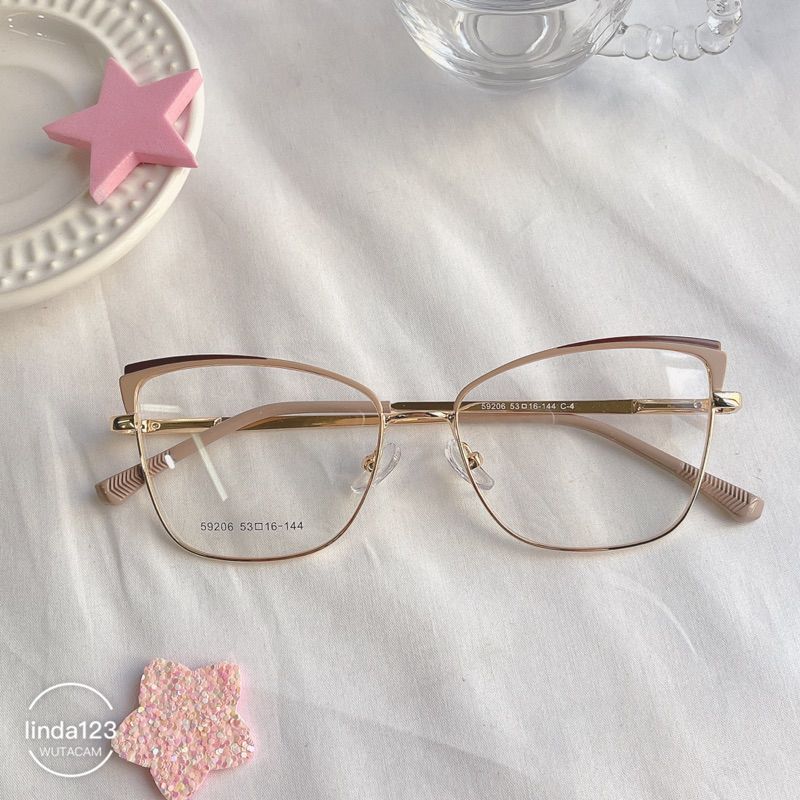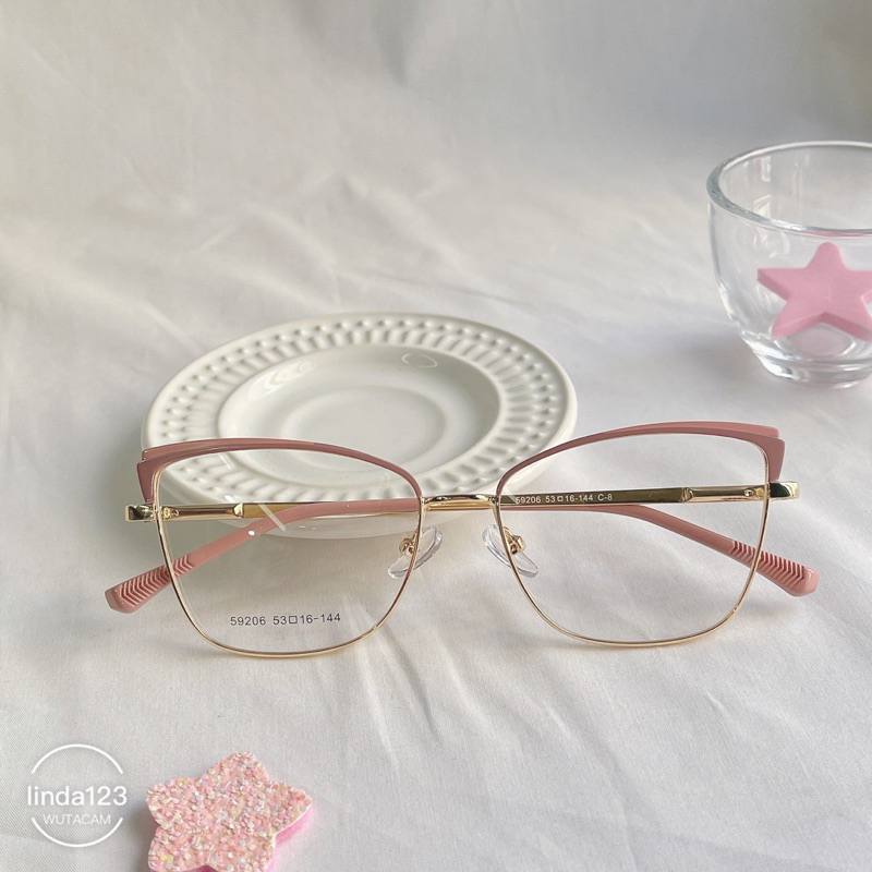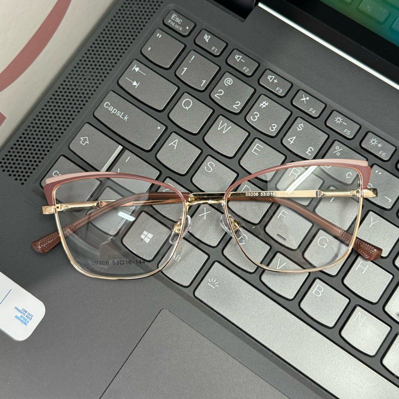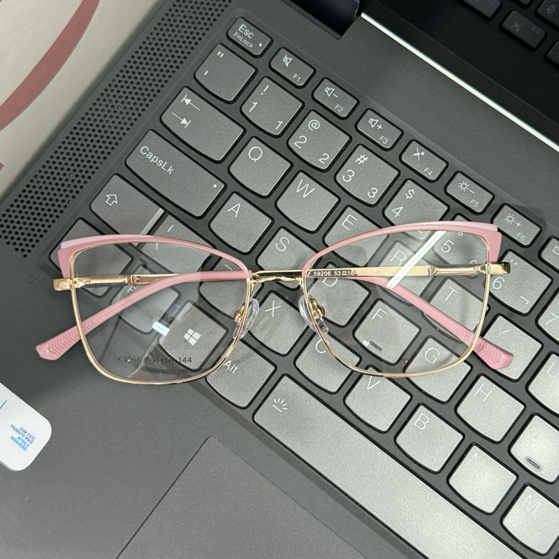 Armação De Óculos Feminino Quadrado Gatinho Metal Promoção 59206