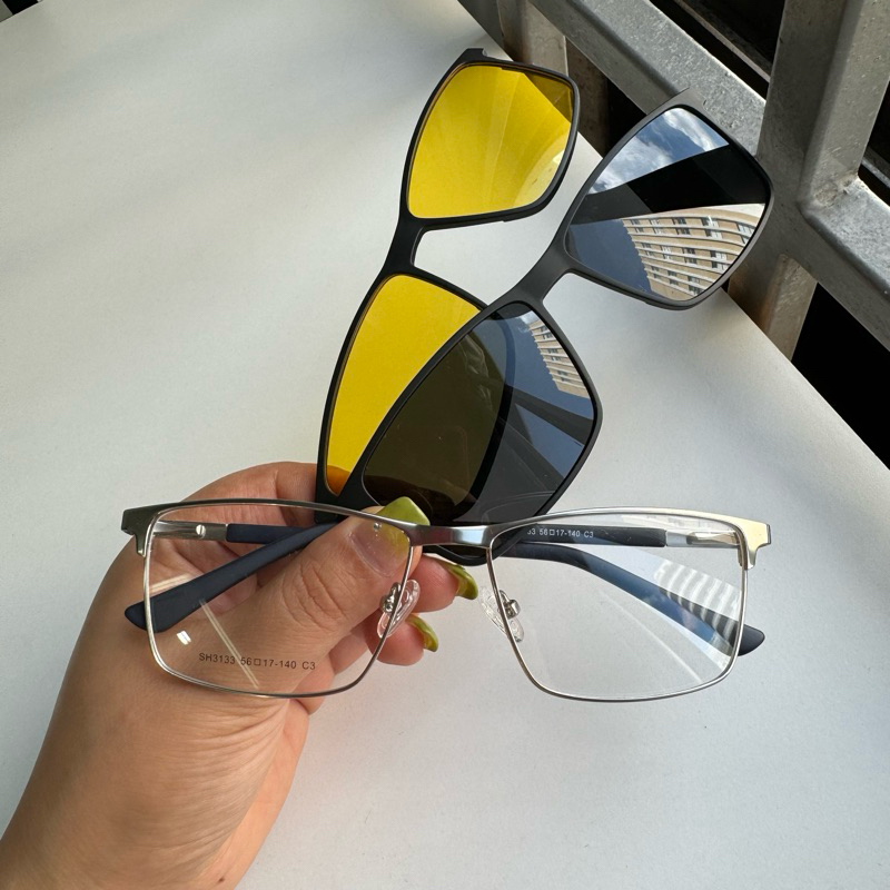Armação de óculos Clipon 3 EM 1 Masculino 1 Armação + 1 lente preto + 1 lente amarelo/ Tem dois tamanhos 3133