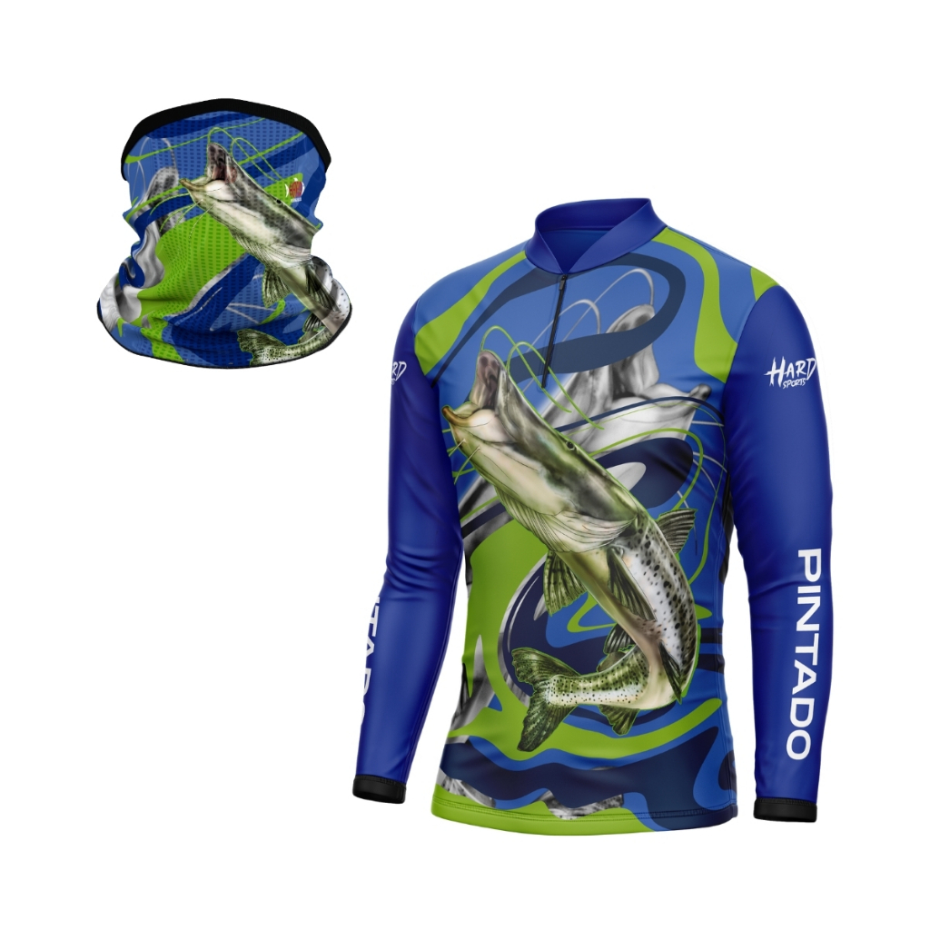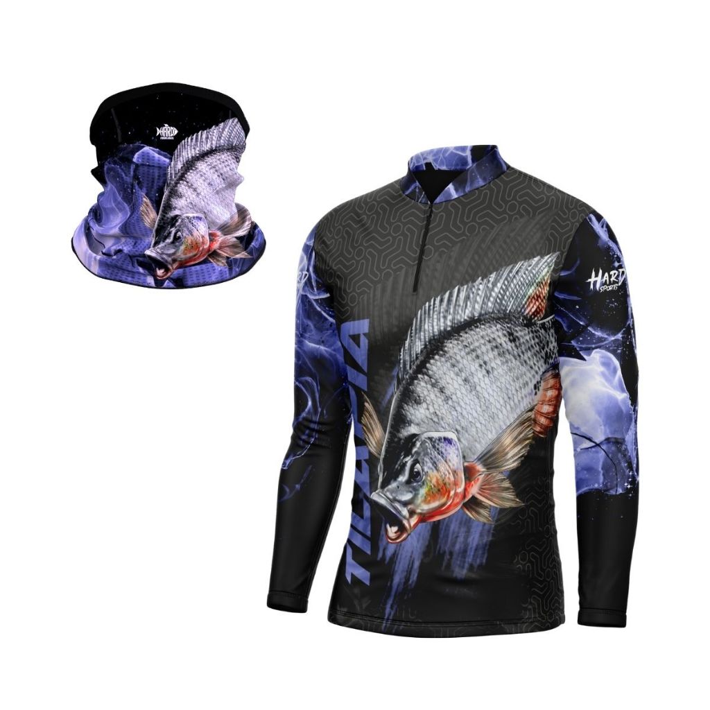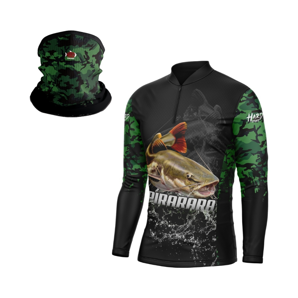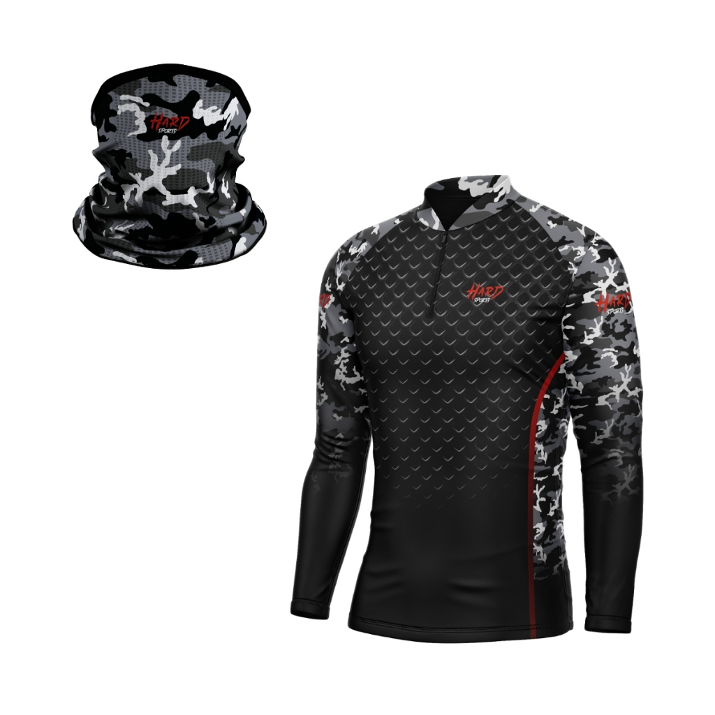 Kit Camisa Camiseta Blusa De Pesca + Bandana Balaclava Com Proteção Térmica Uv50 Tecido Dryfit Leve