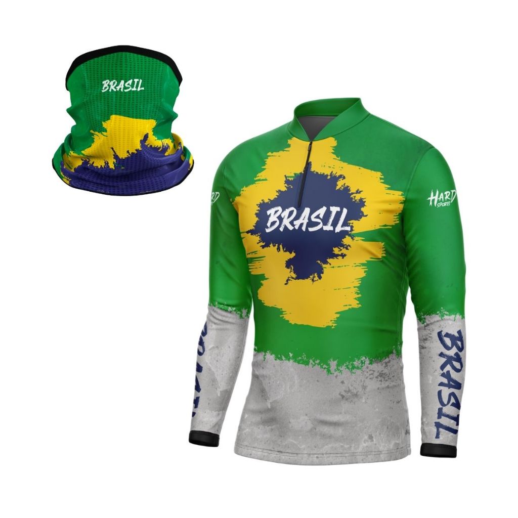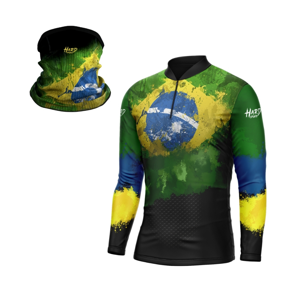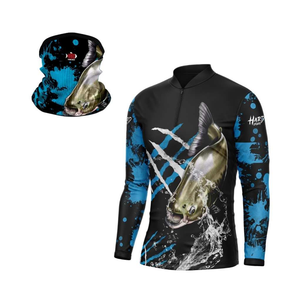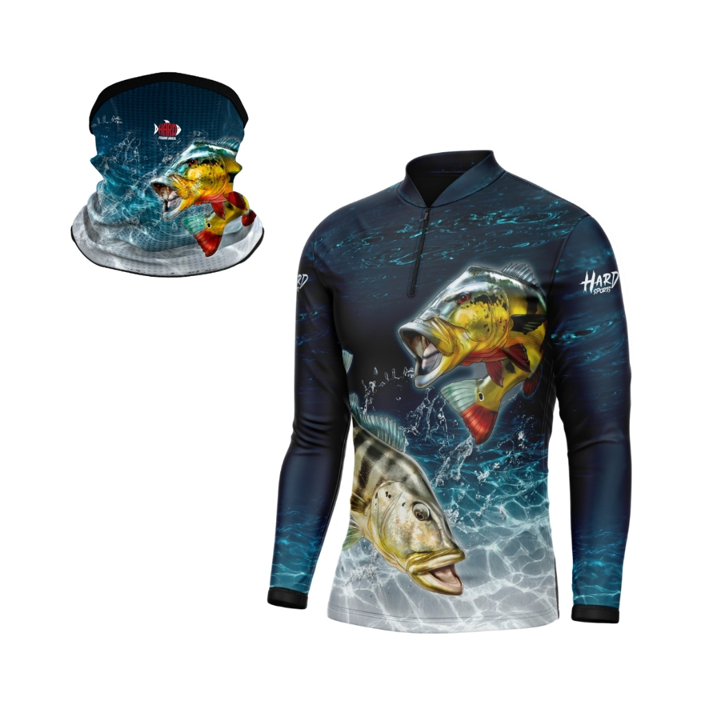 Kit Camisa Camiseta Blusa De Pesca + Bandana Balaclava Com Proteção Térmica Uv50 Tecido Dryfit Leve