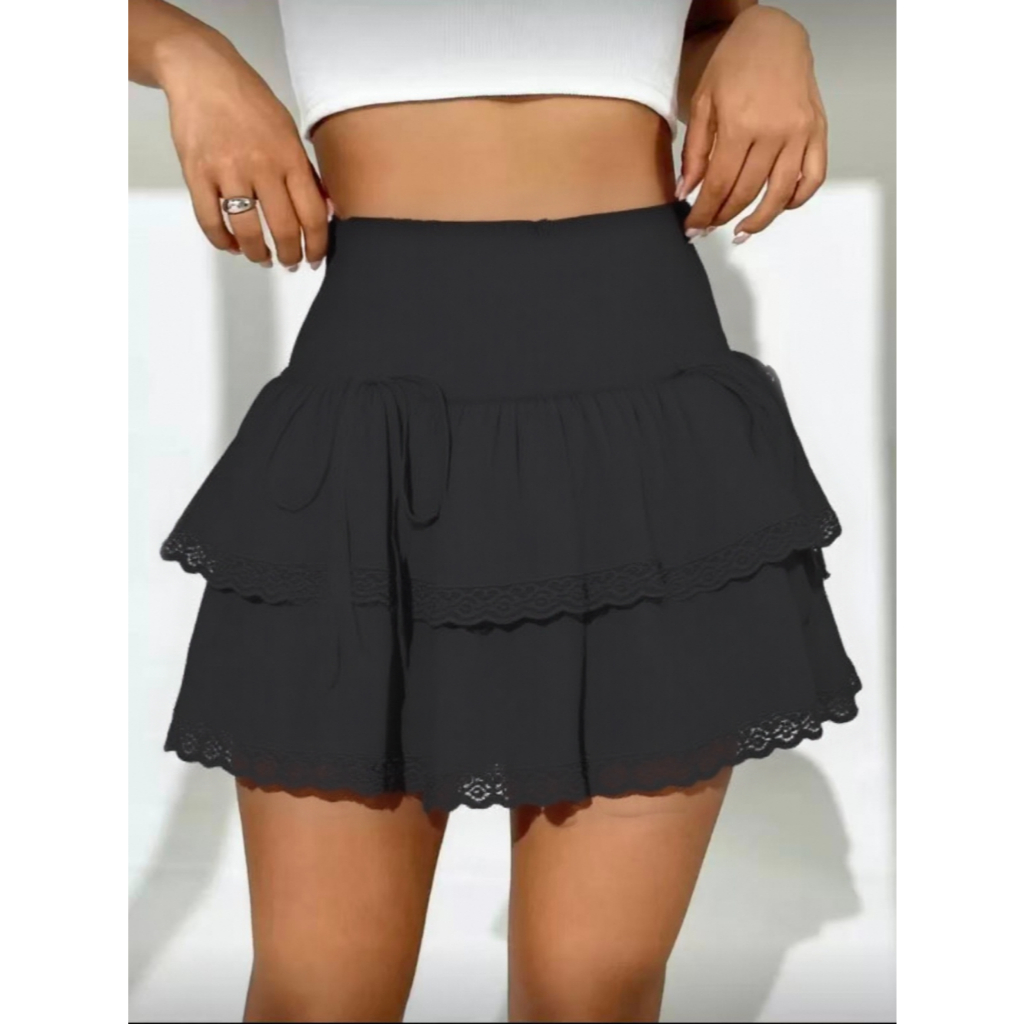 Saia Curta De verao de cintura alta duas camadas Casual Laço Contraste Nó borboleta Nó Noite