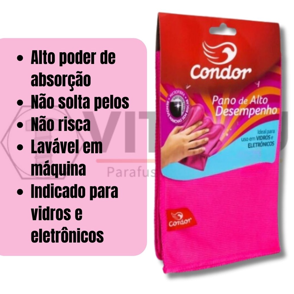 Pano Microfibra de alto desempenho para vidros e eletrônicos Rosa Condor 40cm x 30cm