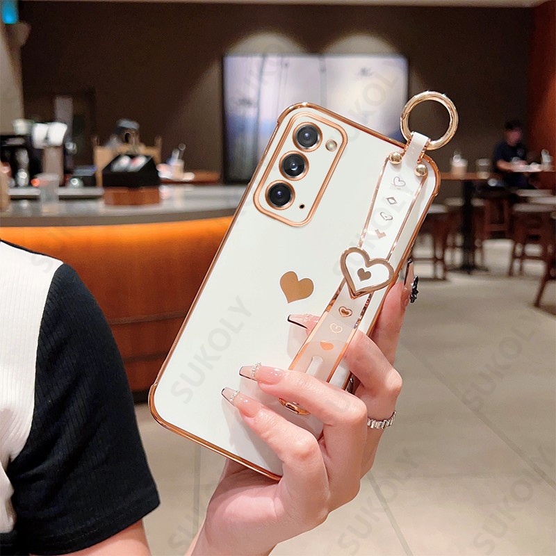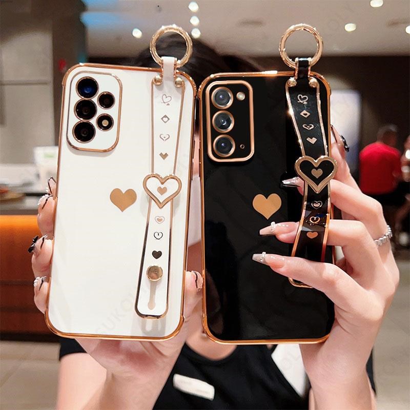 Capa De Luxo Suporte De Pulseira Para Samsung Galaxy S22 Ultra S21 Plus S20 FE Revestimento De Coração De Amor