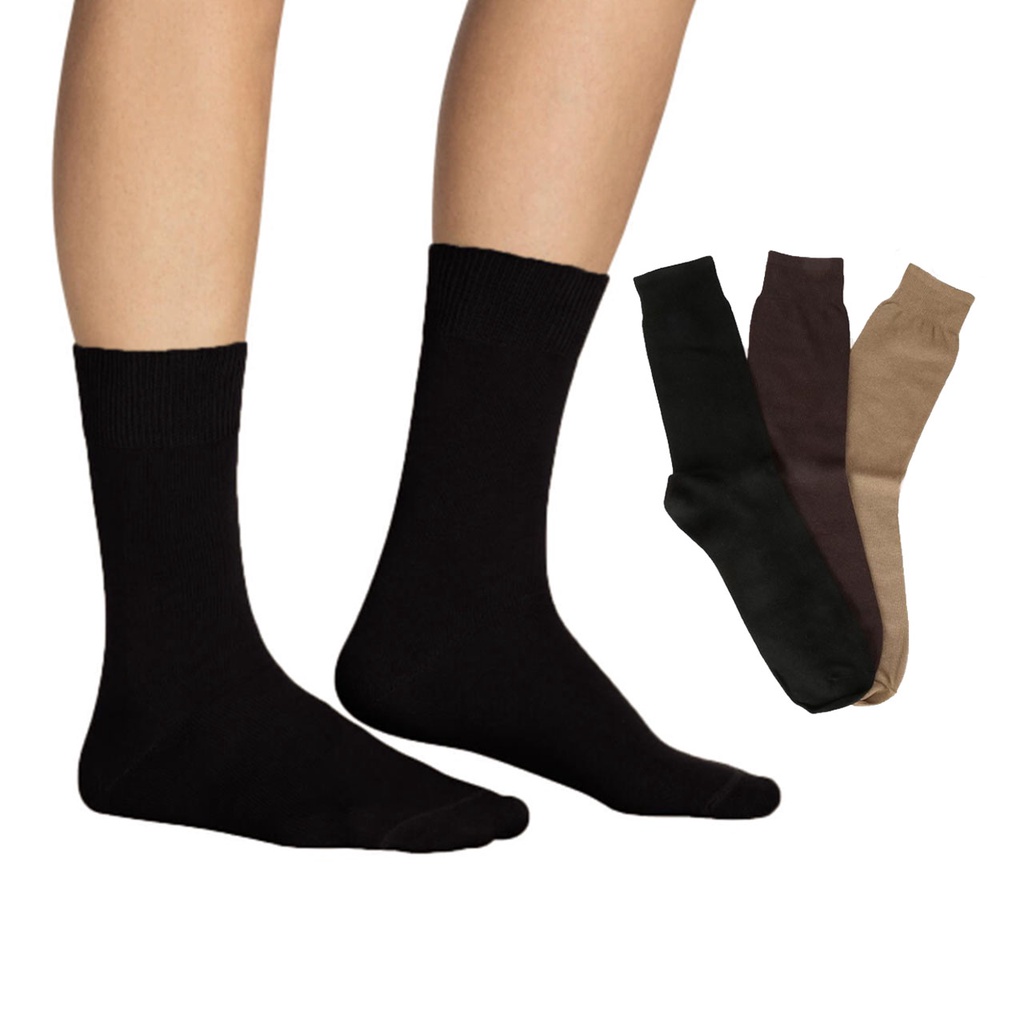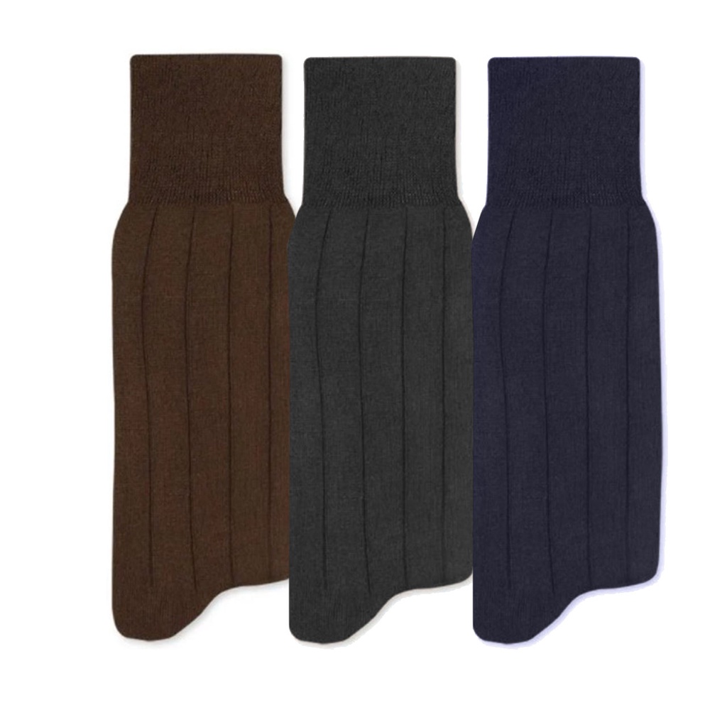 Kit 3 Meias Social em ALGODÃO 39 ao 43 Buky Cores Escuras Preto Marrom Marinho Bege Cinza Meia para Sapato