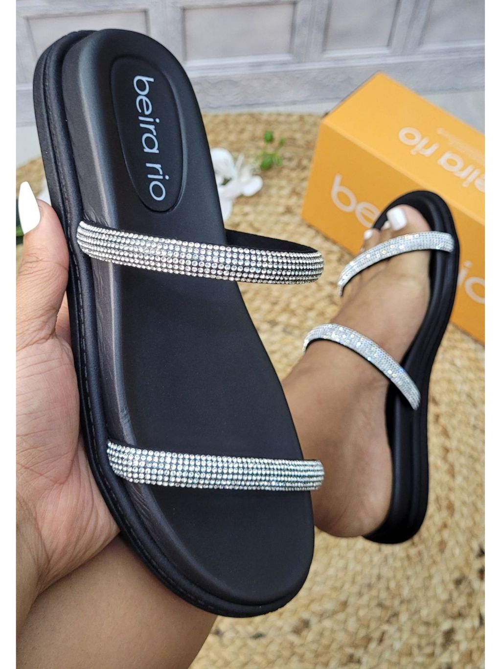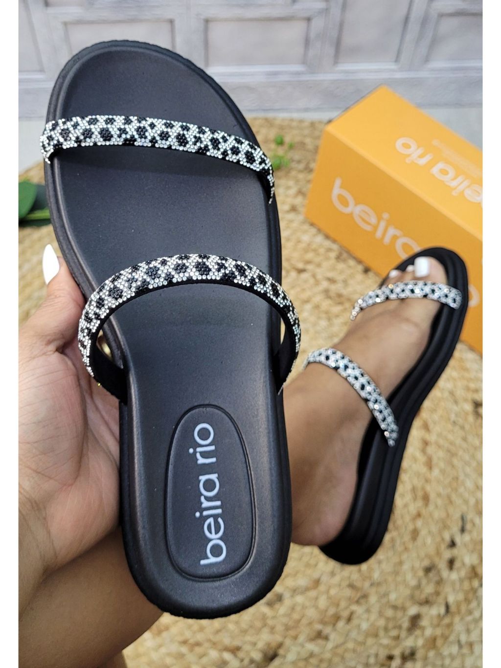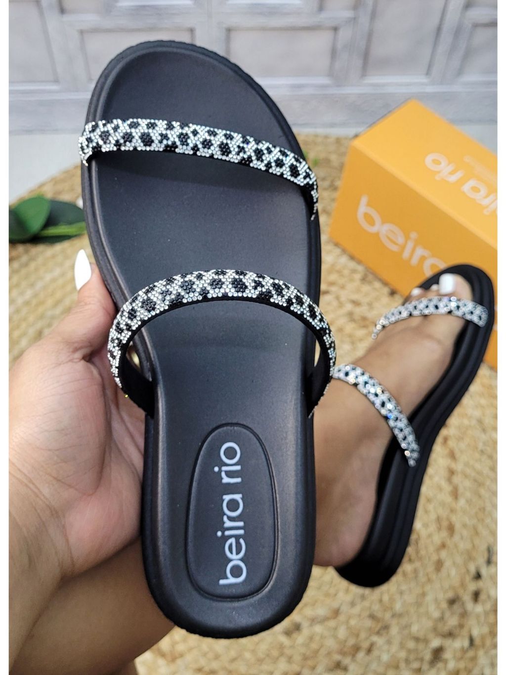 Sandália Beira Rio Feminina com Strass Confortável e Elegante