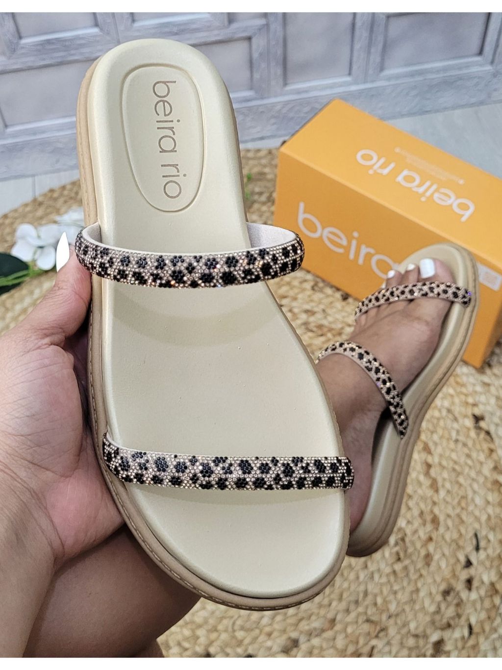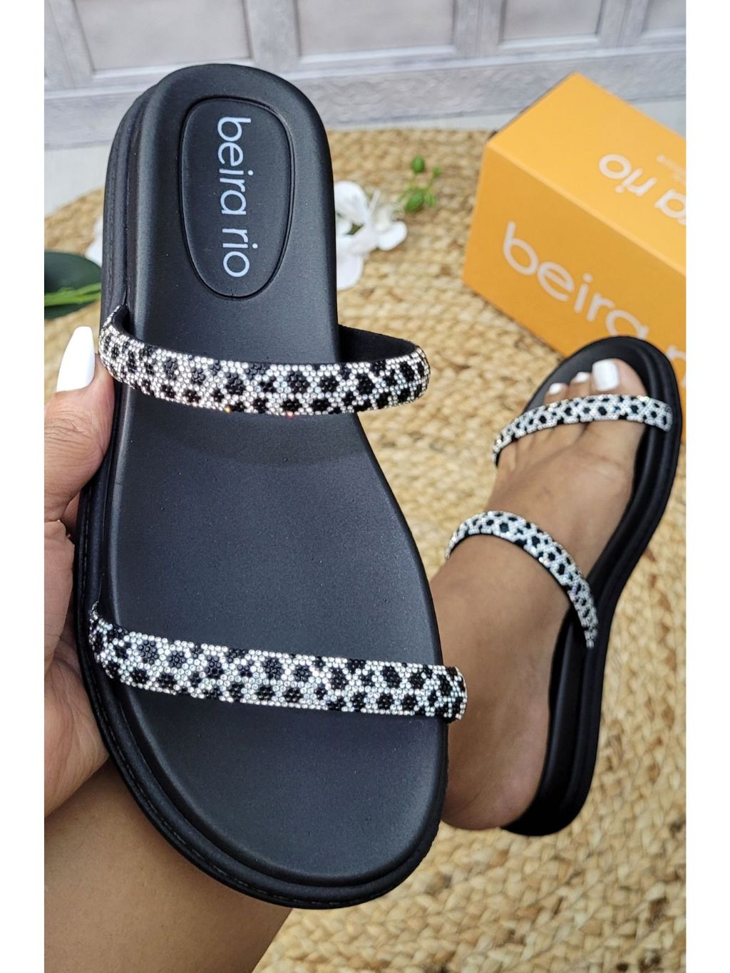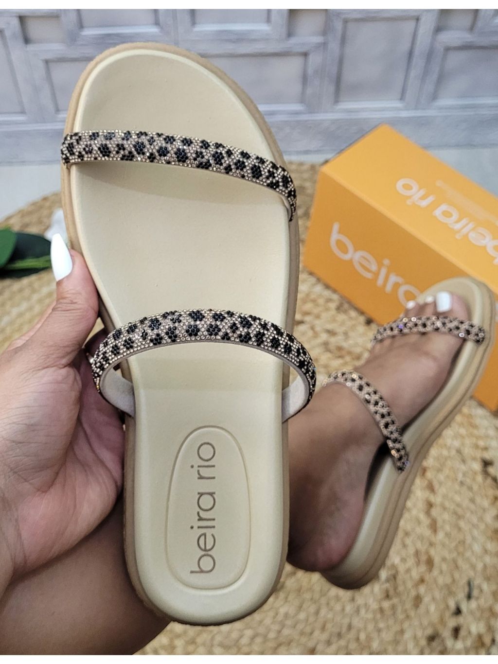 Sandália Beira Rio Feminina com Strass Confortável e Elegante