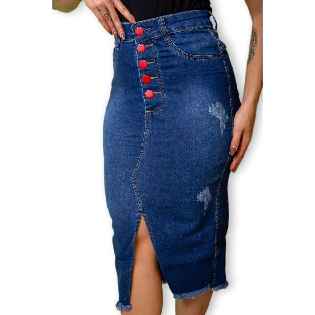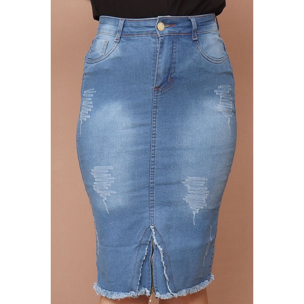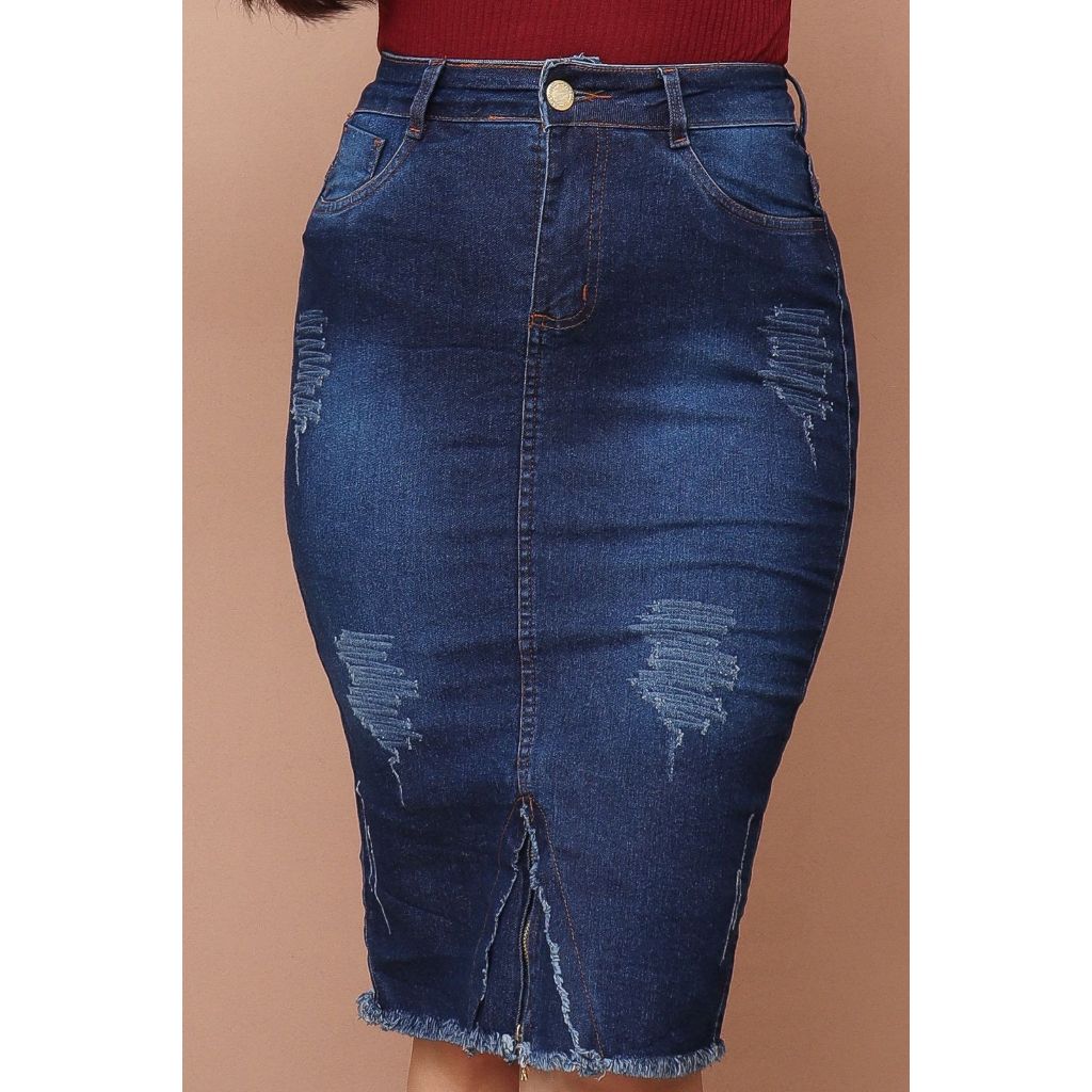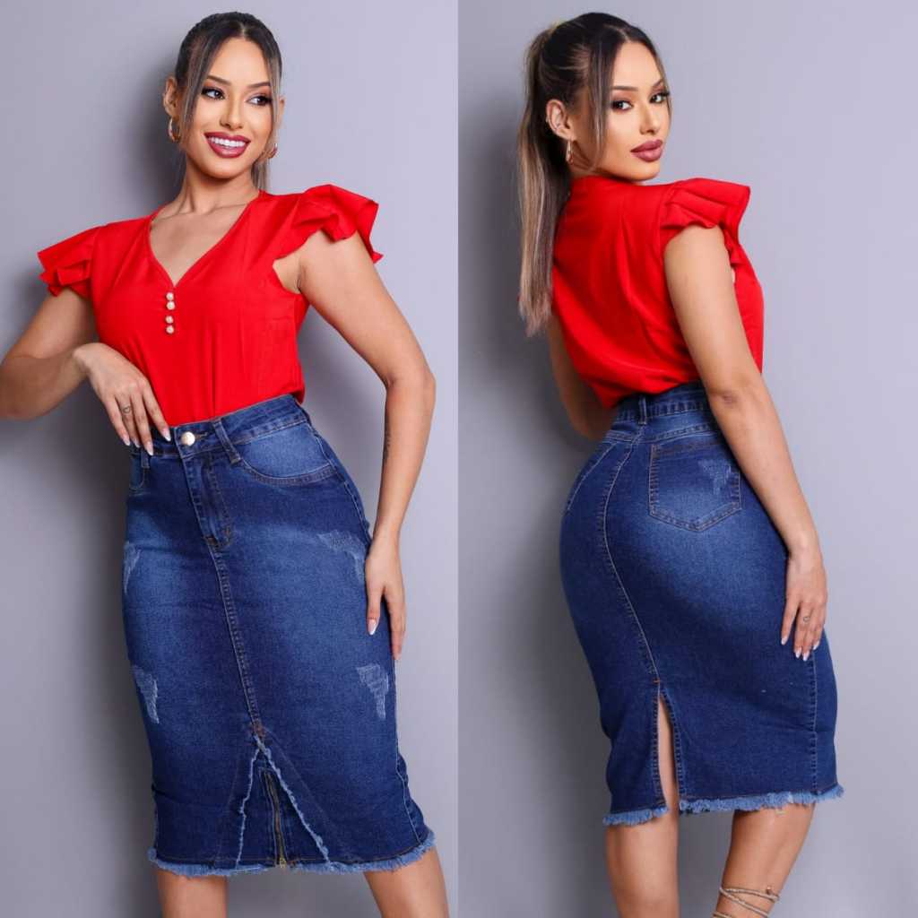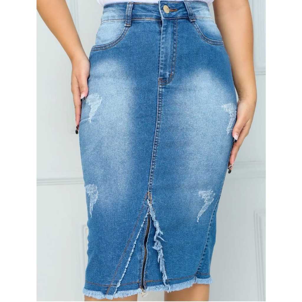 Saia Jeans Longa Feminina Moda Cristã Evangélica Secretaria