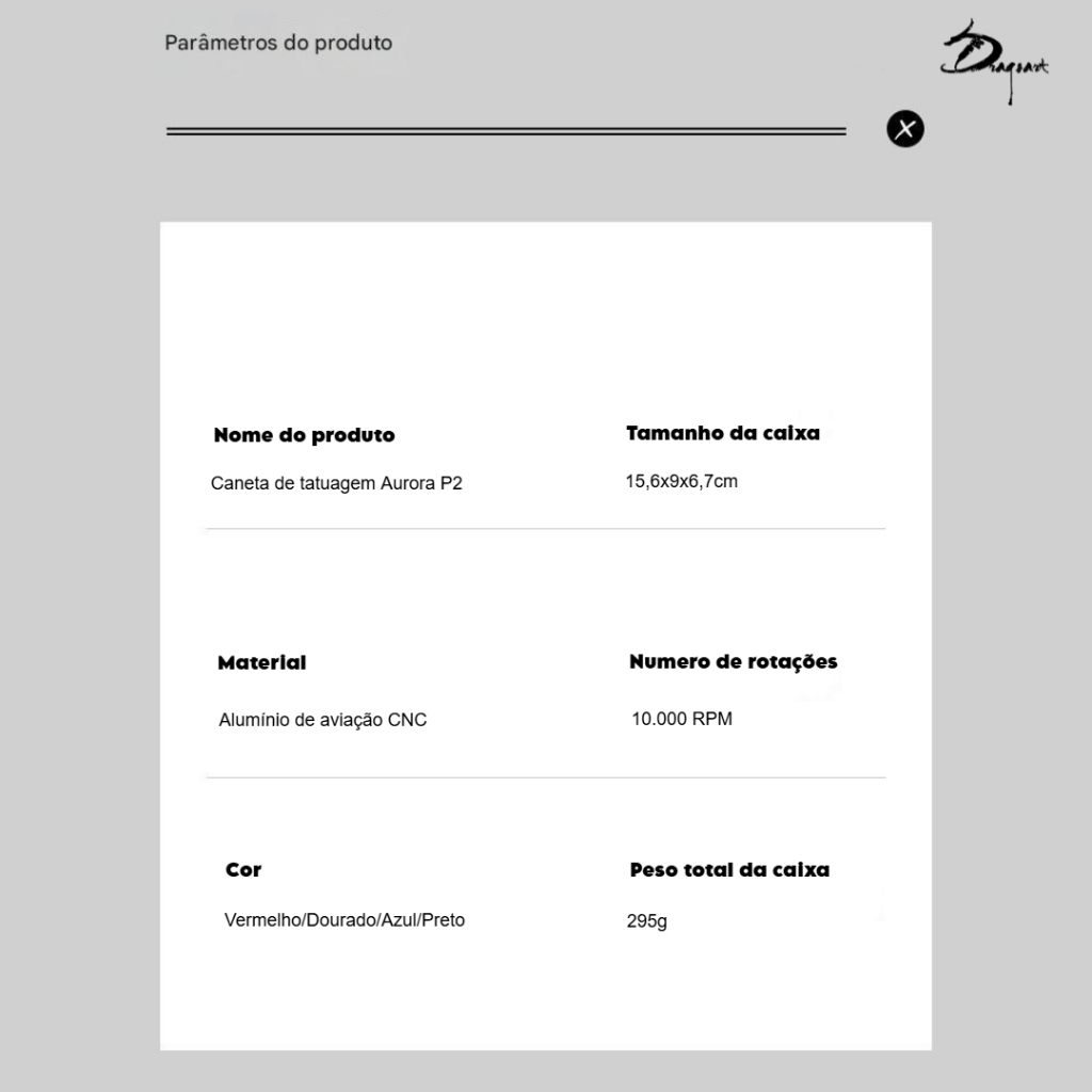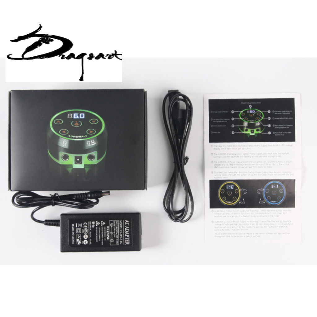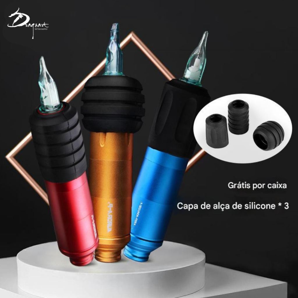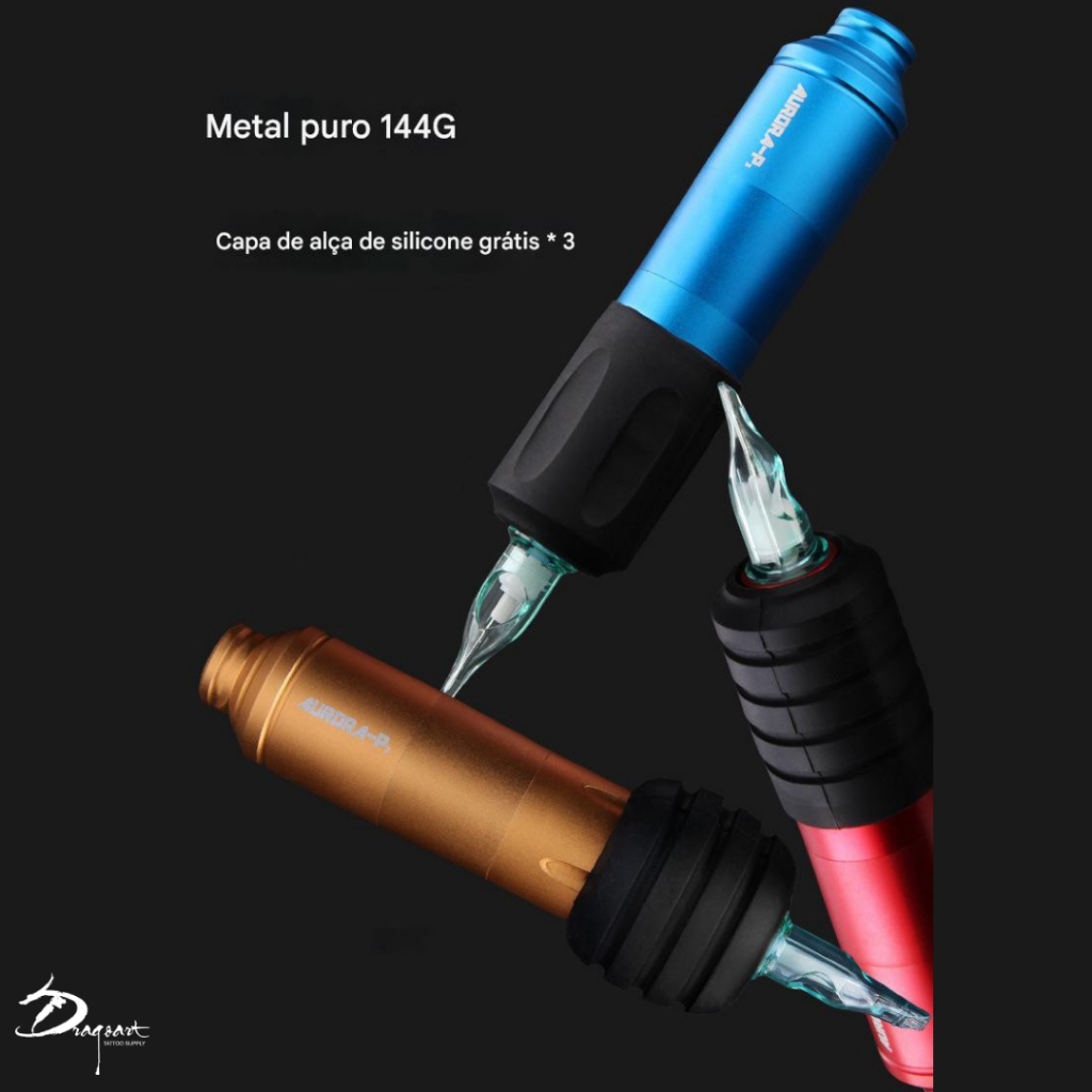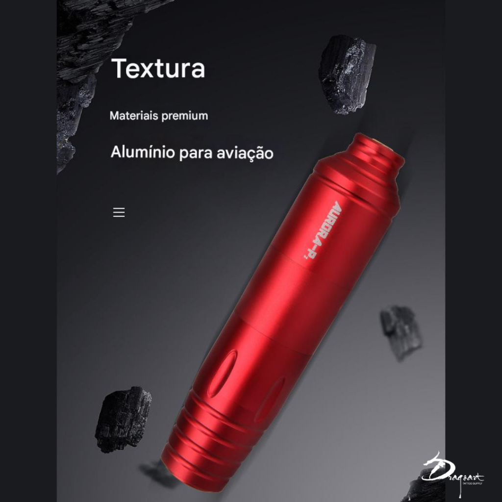 Kit Máquina Dermografo Pen Rotativa Para Tattoo Aurora P2 + Fonte Aurora 2 com visor de LED e Touch