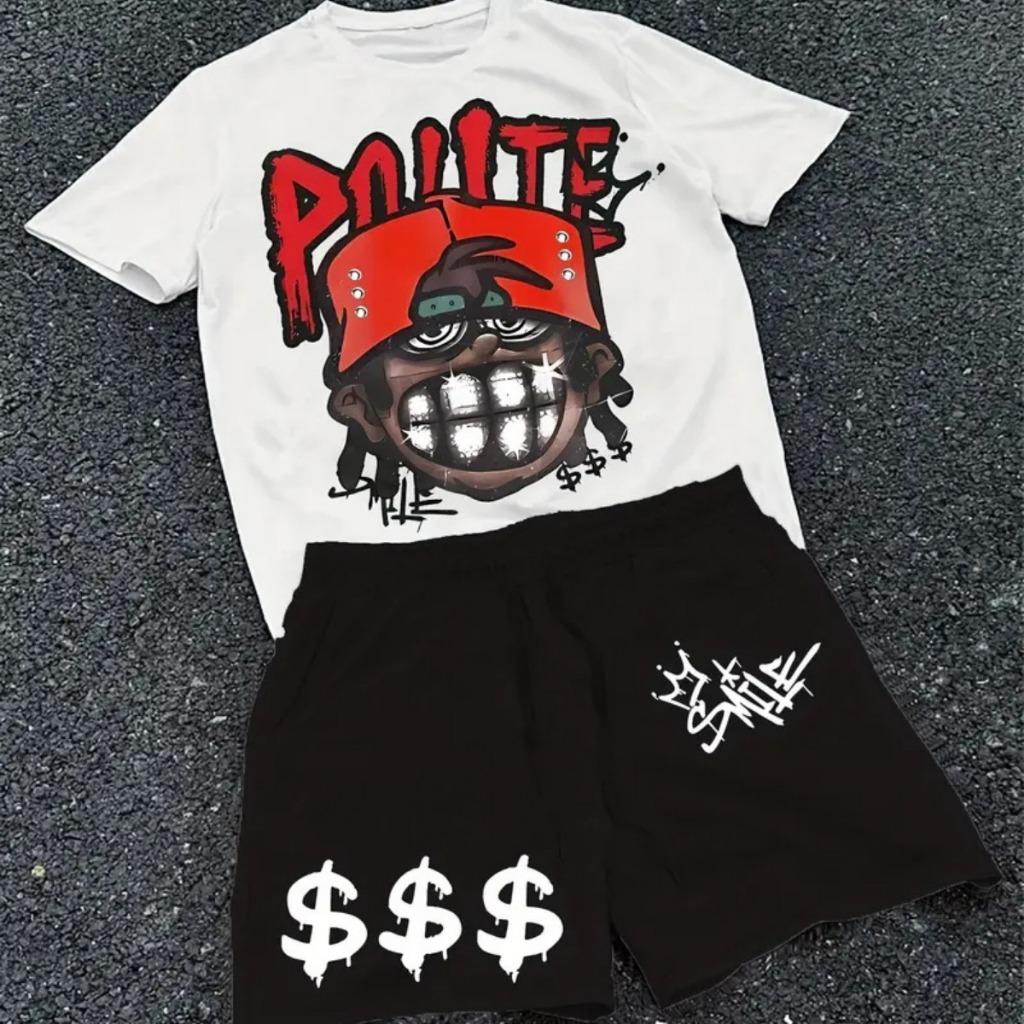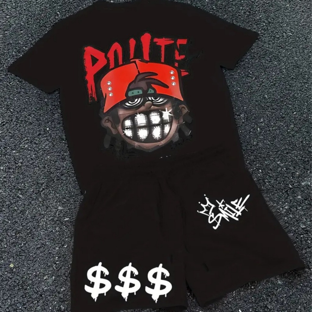 Conjunto Camiseta e Short Tactel Streetwear Mafia Swag Style Camisa Algodão Gola Redonda Lançamento