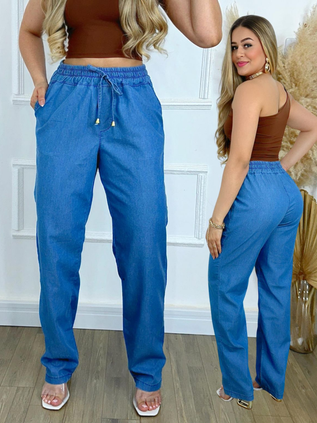 Calça Jeans Feminina Cintura Alta Tecido Leve e Soltinho tamanho do 36 ao 50