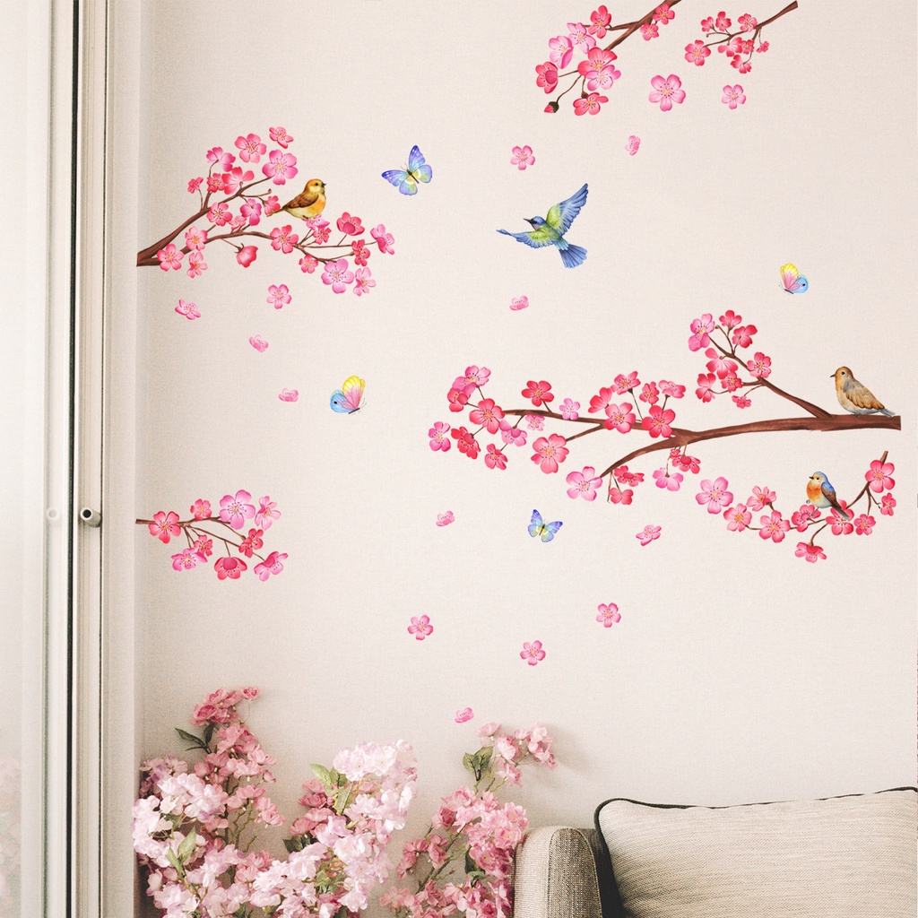 Adesivos De Parede De Árvore De Ameixa Rosa Quarto Sala De Estar Adesivos De Paisagismo