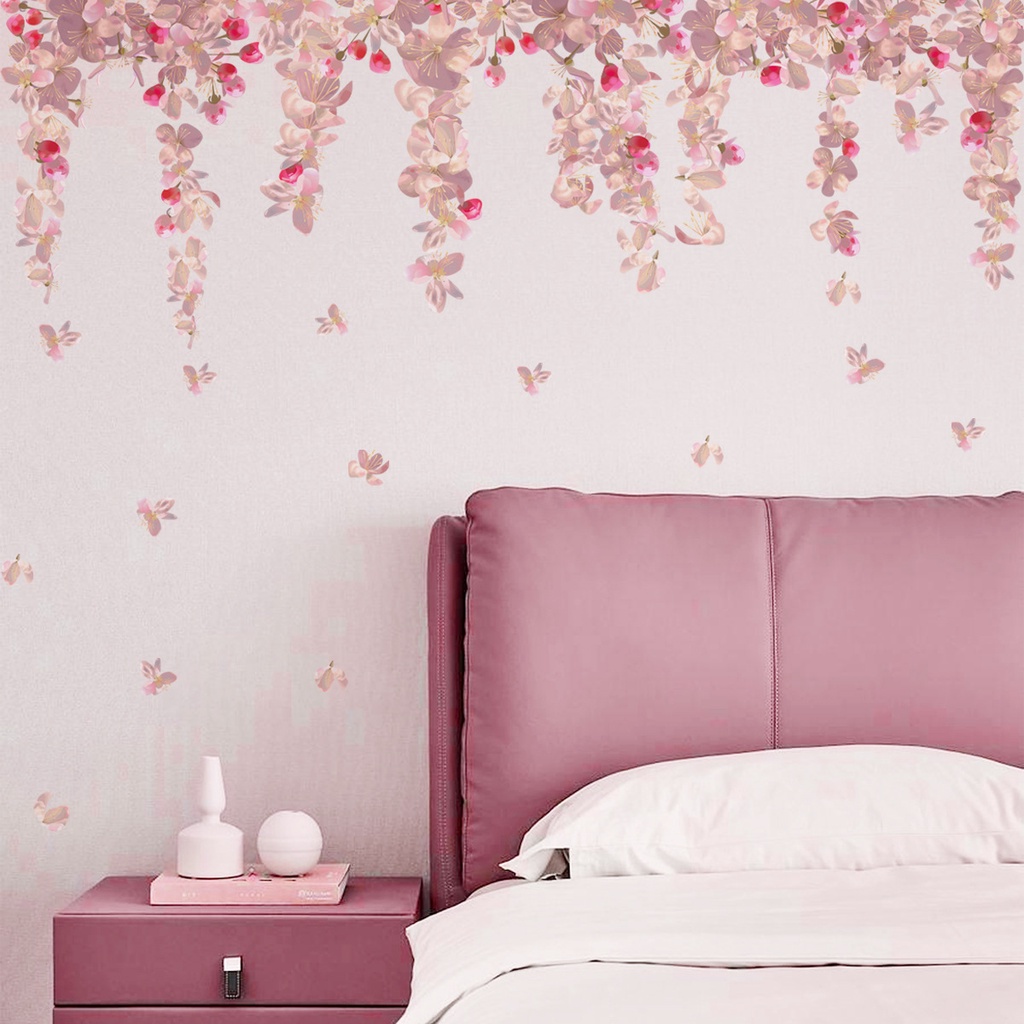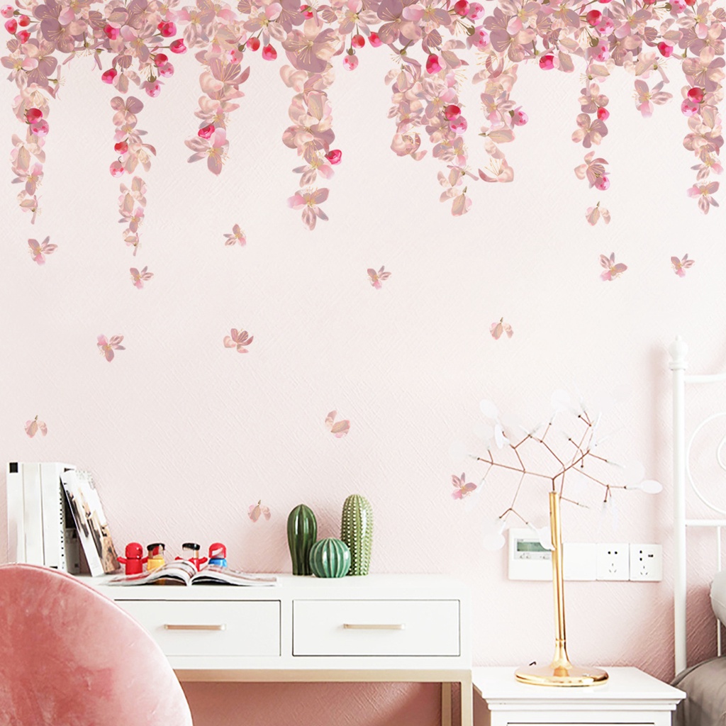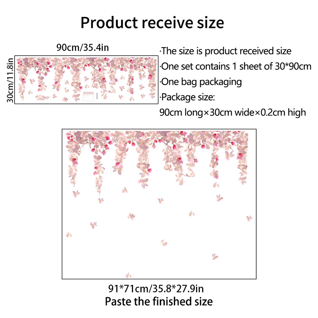 Adesivo de parede de videira de flor rosa adesivo de decoração de quarto de sala de estar
