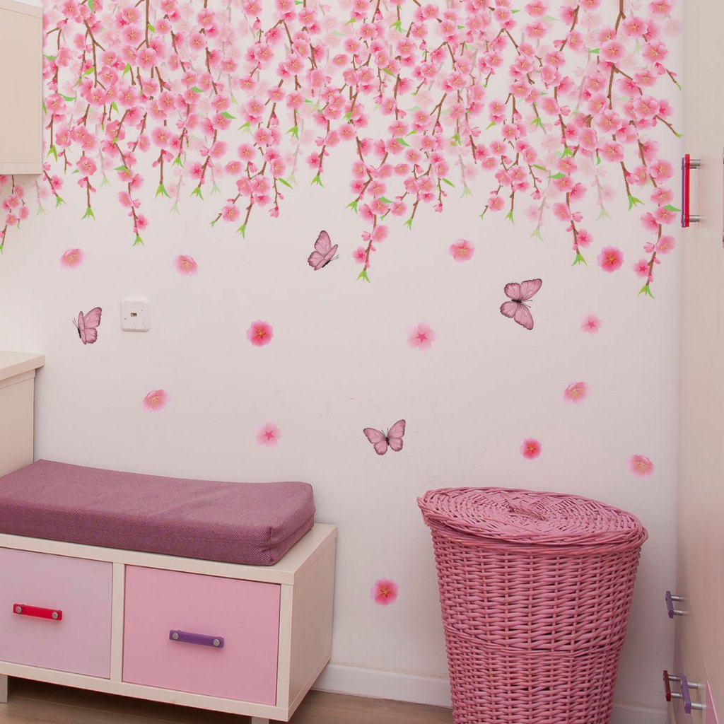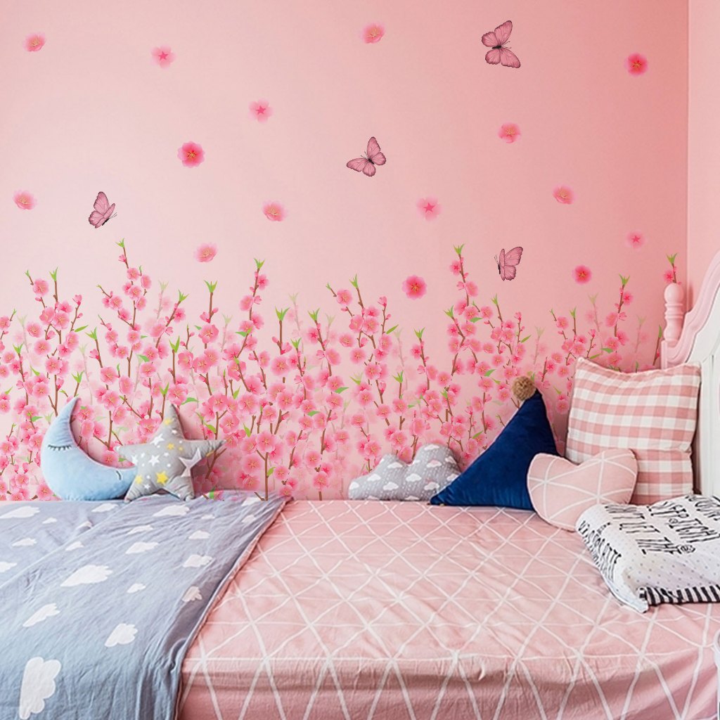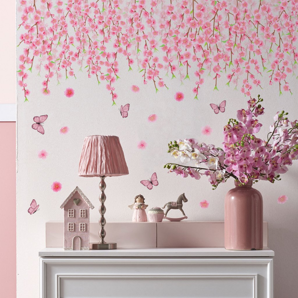 Adesivo de parede de videira de flor rosa adesivo de decoração de quarto de sala de estar