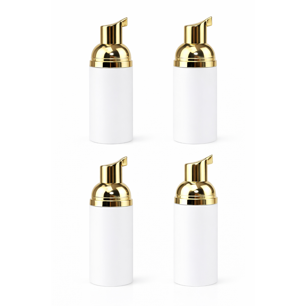 Frasco Pump Espumador 150ml Branco e Dourado Limpeza De Rosto Escolha a Quantidade