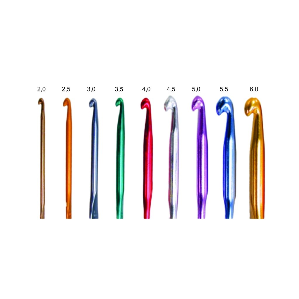Kit 9 Agulhas de Crochê em Alumínio Tamanhos 2 a 6 mm