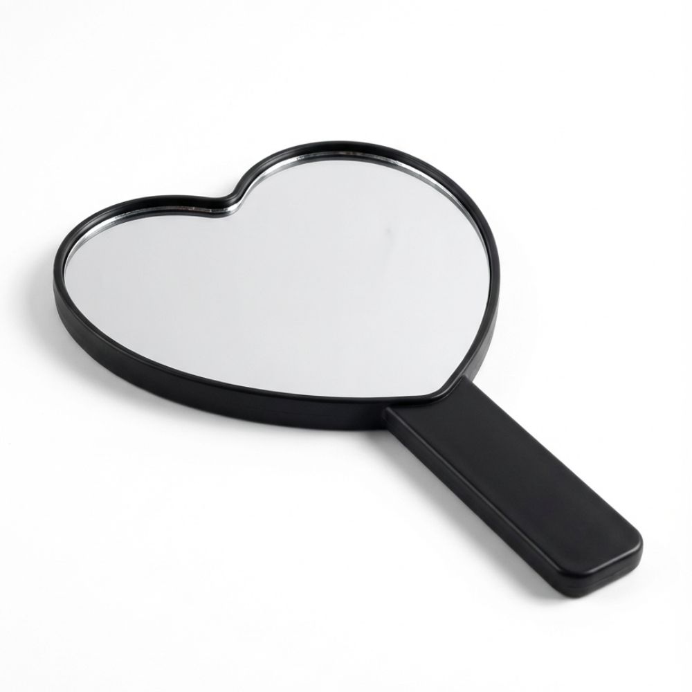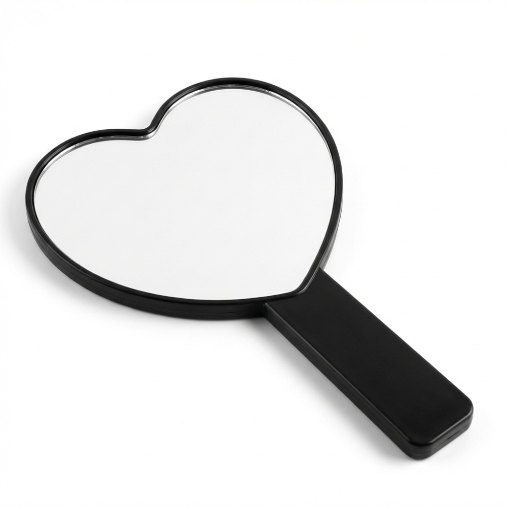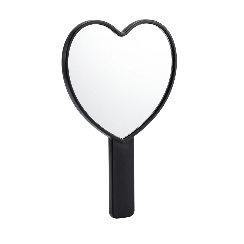 Espelho de Mão Maquiagem Coração Preto | Prático e Elegante